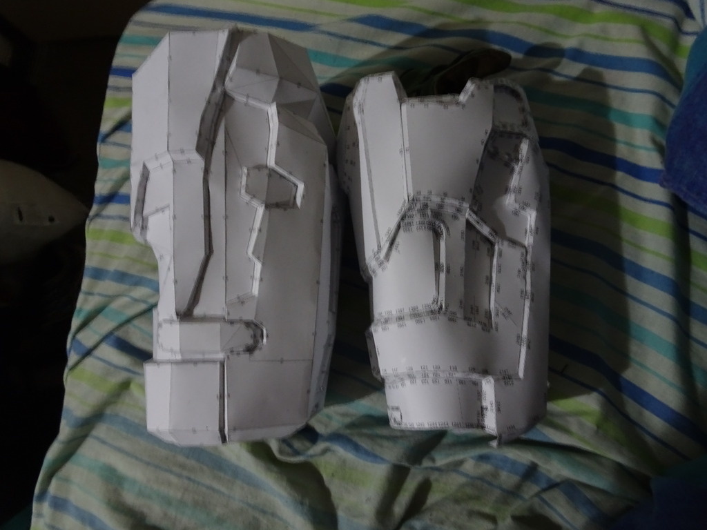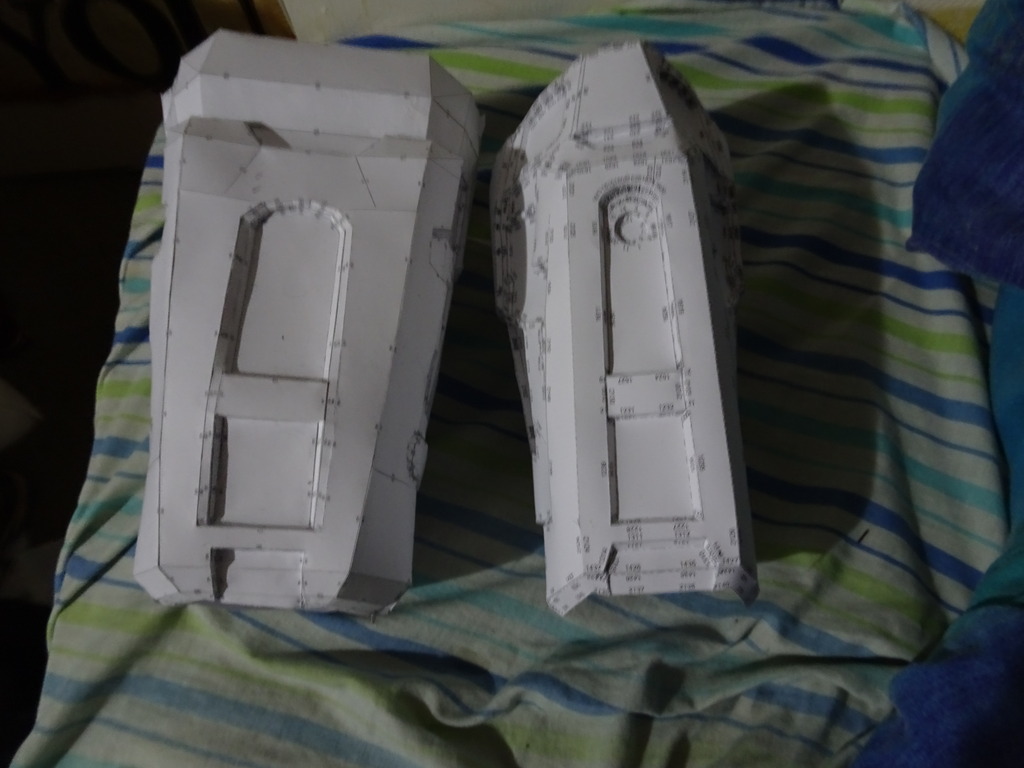 longs times between progress as usual. my predator build seems to have taken over as my "main" build so i do bits and pieces on the spartan on the side. pepped up the second forearm and while it would fit my bare arm in fairly well it was way too small to fit the extra mass of the undersuit forearm as well. making me think the first forearm i initially thought was too big is actually i good size. it's just the width of the top part that bothers me. so i think i will cut straight down the center from front to back and glue the pieces back closer together, to make it more proportionate in my opinion.