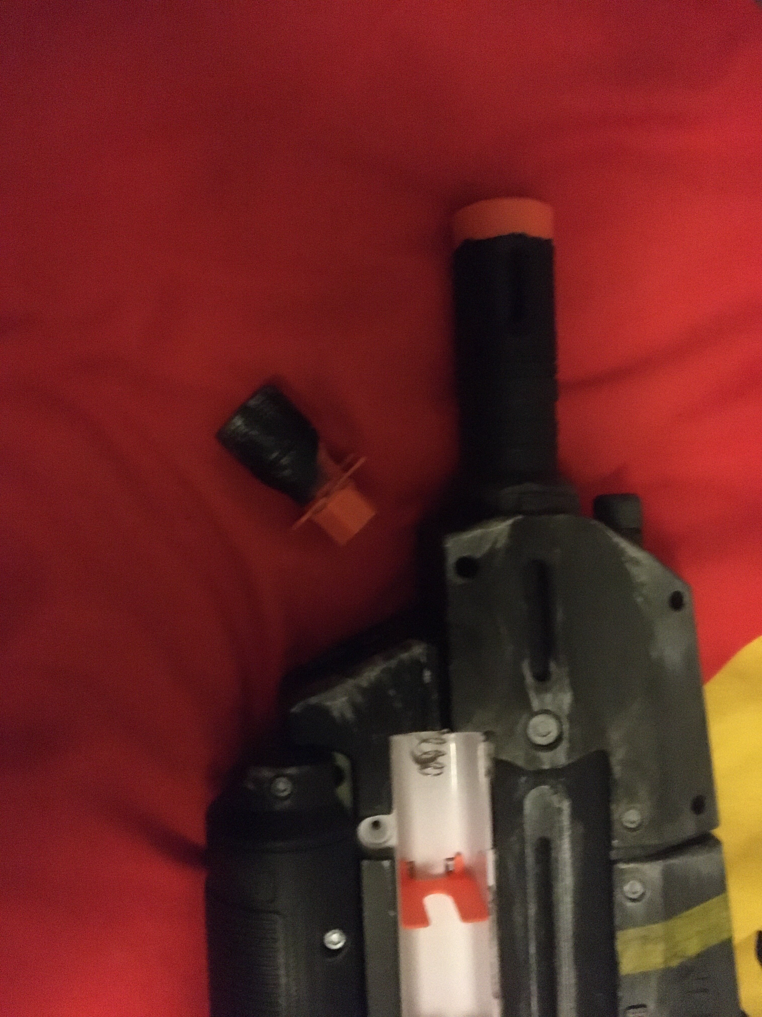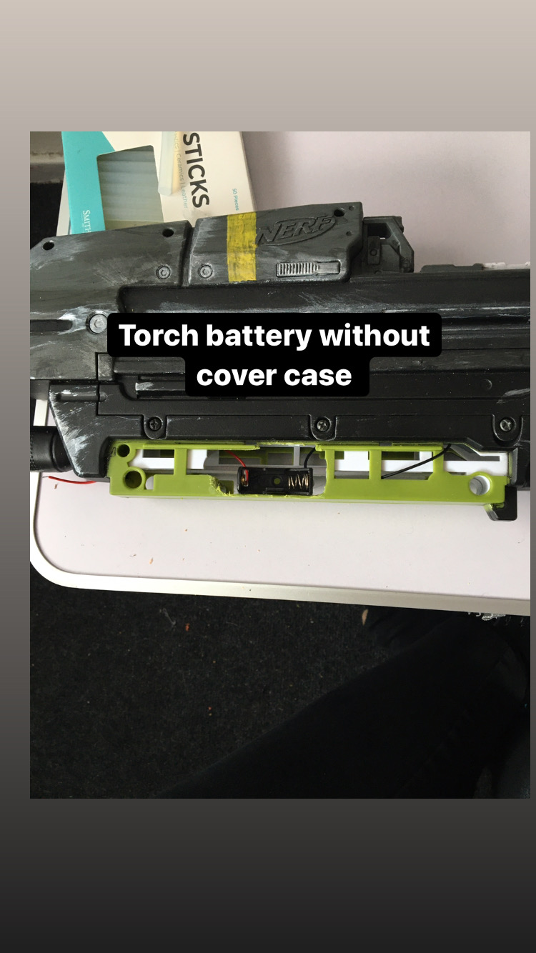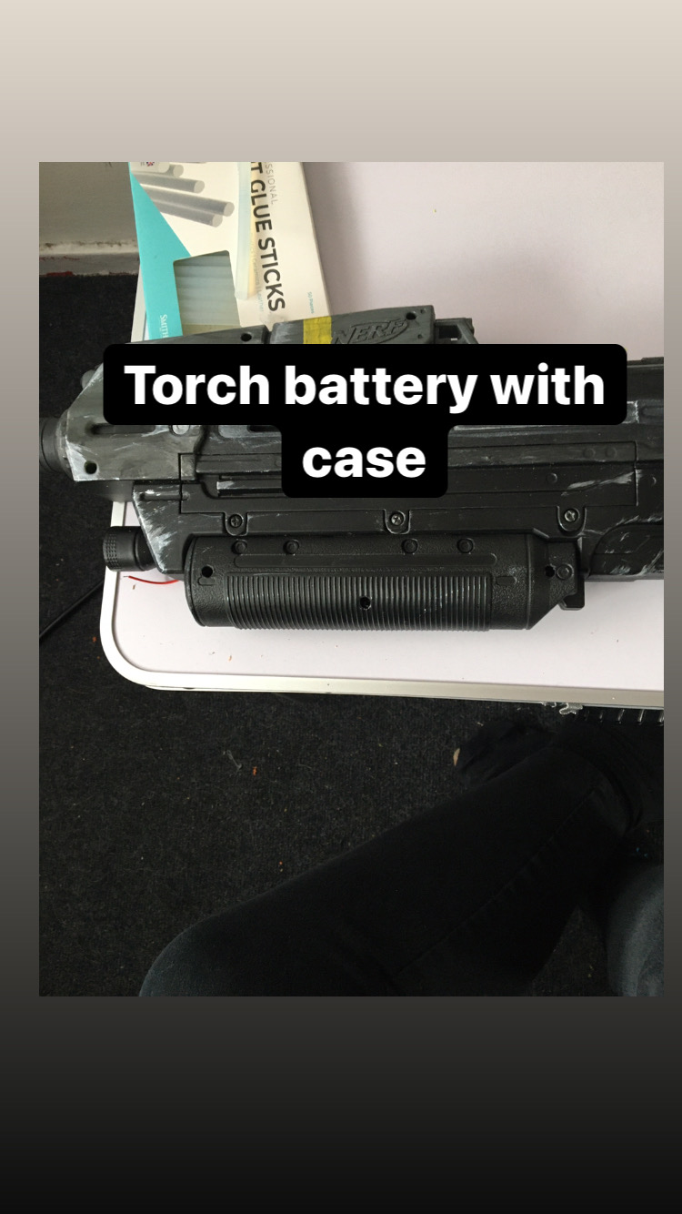 The first thing I did was unscrewed the whole gun so I could gain access to the dummy torch. I removed it, hollowed it out and drilled two holes through the back of the torch. As I had the idea of running the wires through the hole and out to the switch. This ultimately didn’t work out, and I ended up removing the entire back piece of the torch. But I’ll get to that later.