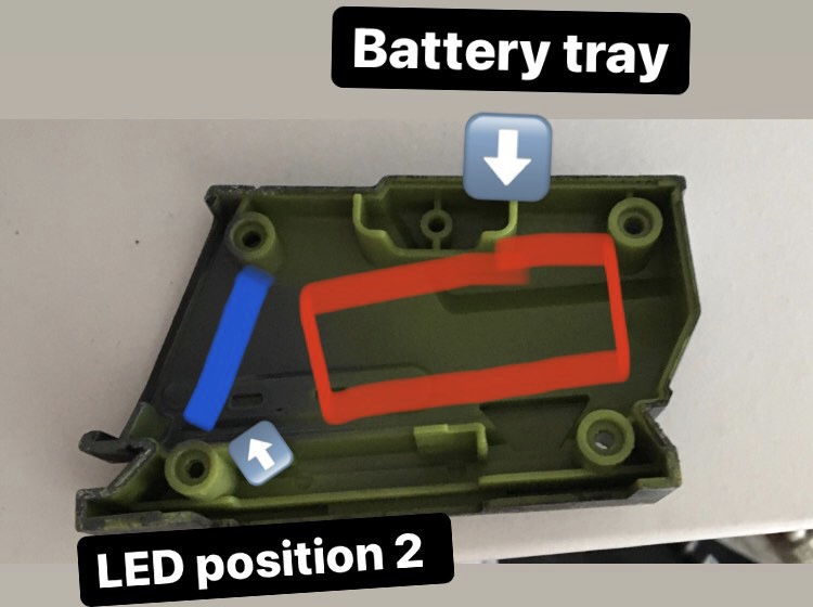 I secured both LEDs down behind the ammo counter screen inserts with a piece of electrical tape and left the battery compartment free floating.