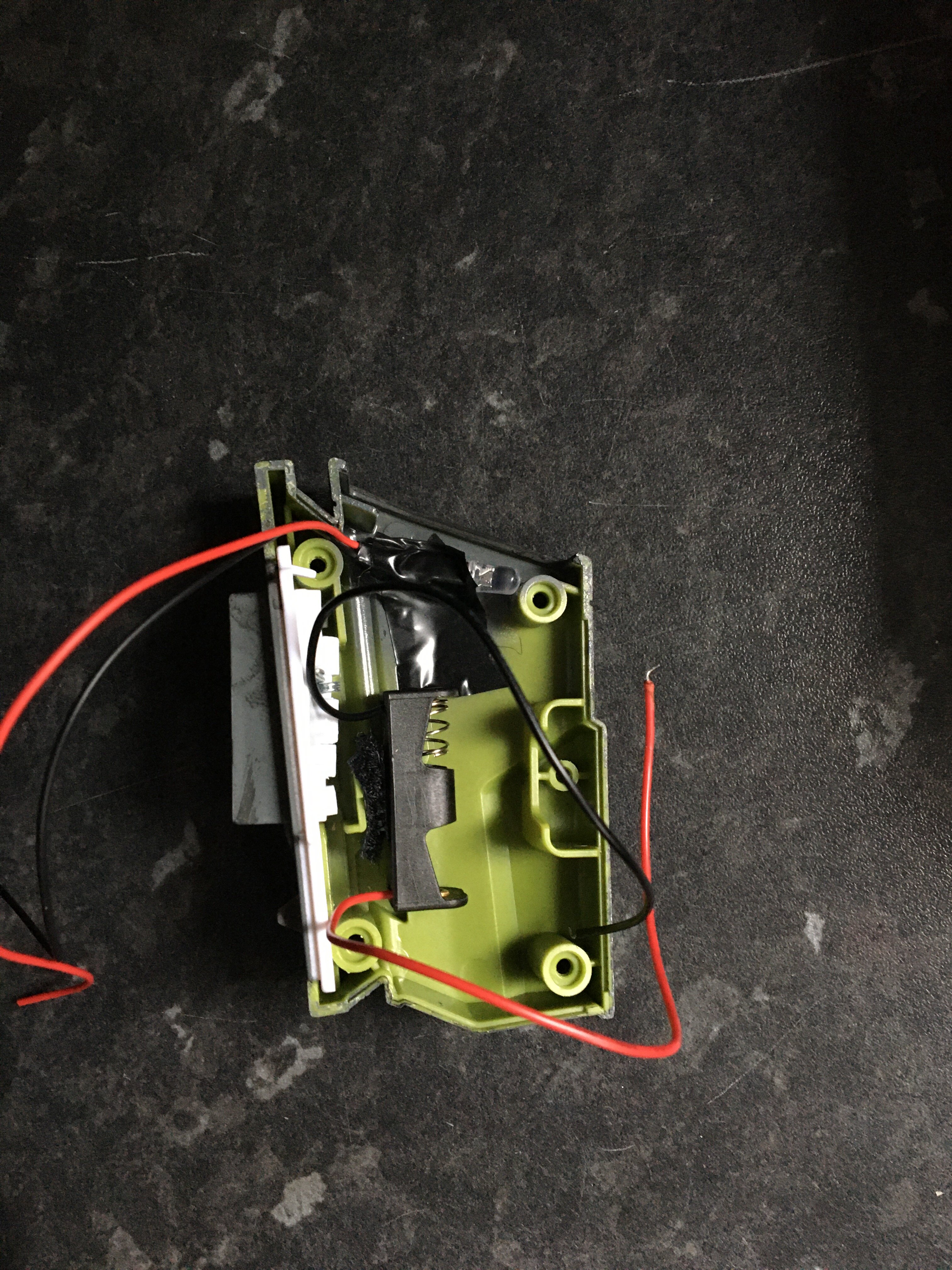 Using the soldering iron, I soldered all of the red wires to one of the switch wires, and all of the black wires to the other switch wire. Once the circuit was working, I put the whole thing back together, however it’s worth noting that you may want to cut the wires back slightly for a better fit.