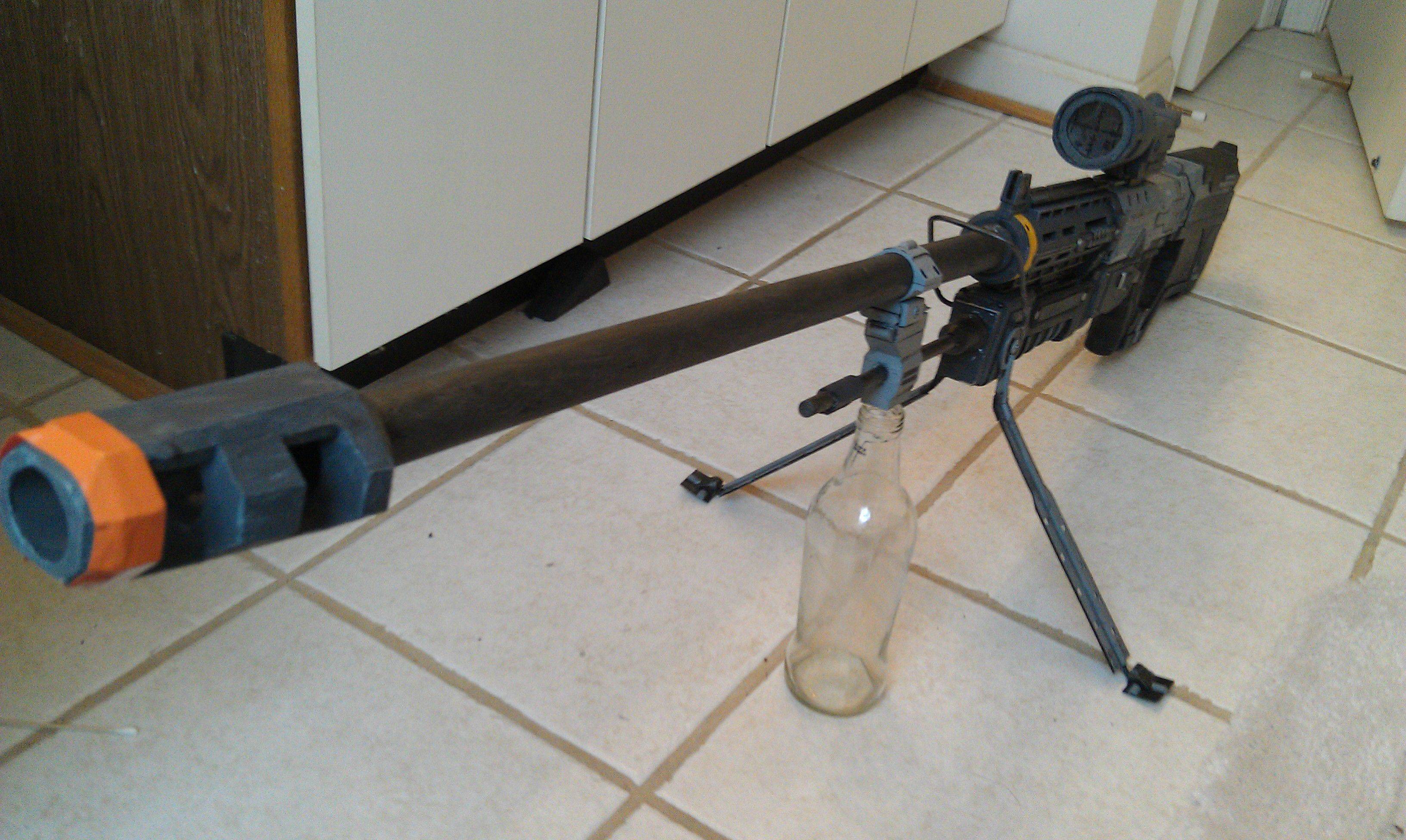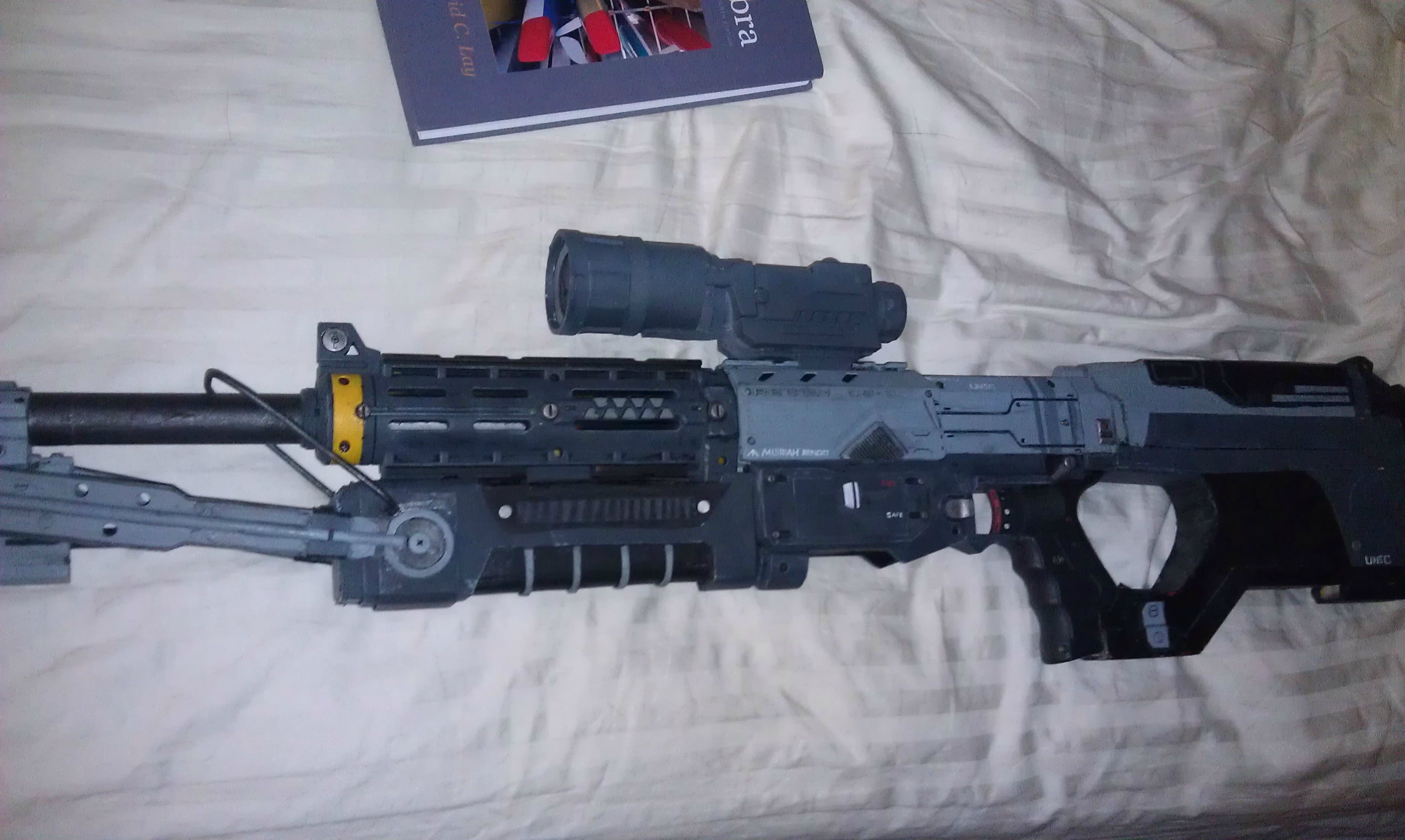 It looks great man, I had the idea of using a Night Owl Night Vision Monocular (NOCX5) for a working night vision scope. The only downside is that it costs about $100 on Ebay and will require a little enginuity to make it all work. It doesn't have the display, but could be like the new Halo 4 scope, with a sight, and a makeshift lcd display beside it. I was thinking of encasing that within a pepakura exterior for mine. I just haven't had the time to do it yet. I hope this makes sense.