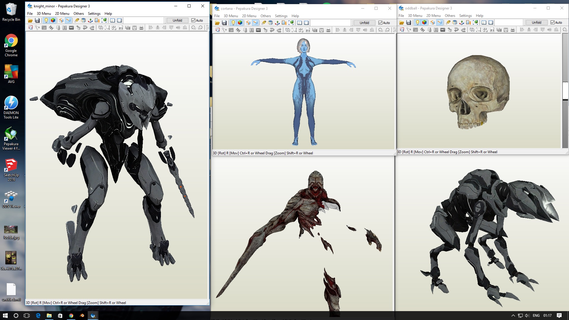 files are from all games accept halo wars. i also have the texture files in vtf format so i need to figure out how to convert them for use in pepakura aswell. the models ive converted so far look workable but could do with some clean up etc. also all articulated parts are completely separated