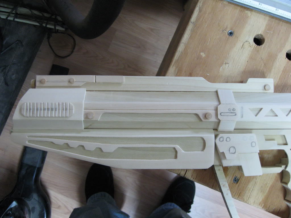 so i have both handle parts finished as well as both long peices and the rail part. still some details to add to the other peice. then i get to work on the trigger and bolt mechanisms.