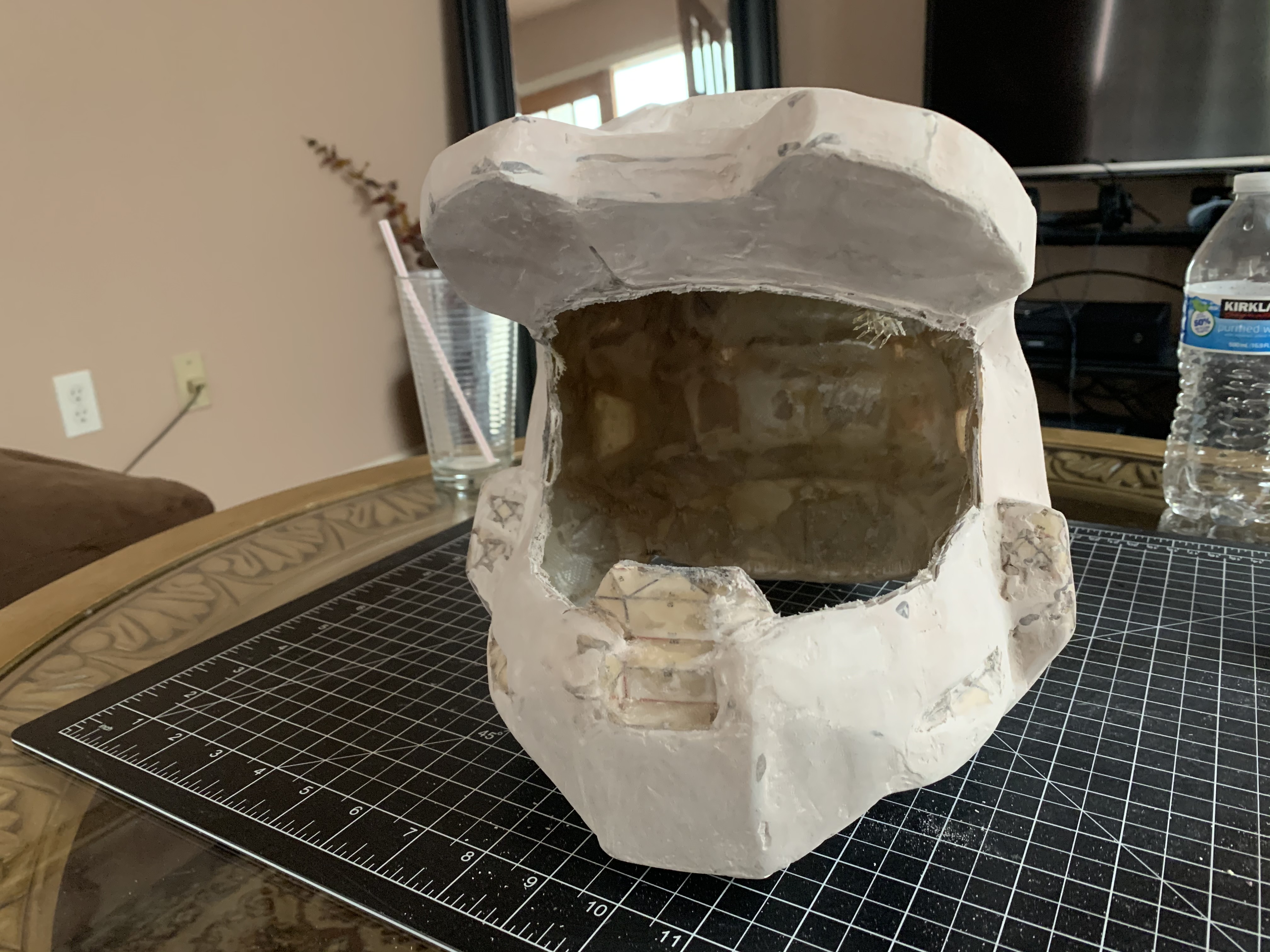 Alright it's been awhile. I'm on my first sanding now, and I am having a problem currently. After the fiberglass strips had dried, I tried putting the helmet on, and it seems to have shrunk to the point where my head cannot go inside it. I remember it fitting perfectly when it was just the pep cutout. Is there anything I can do to fix this?