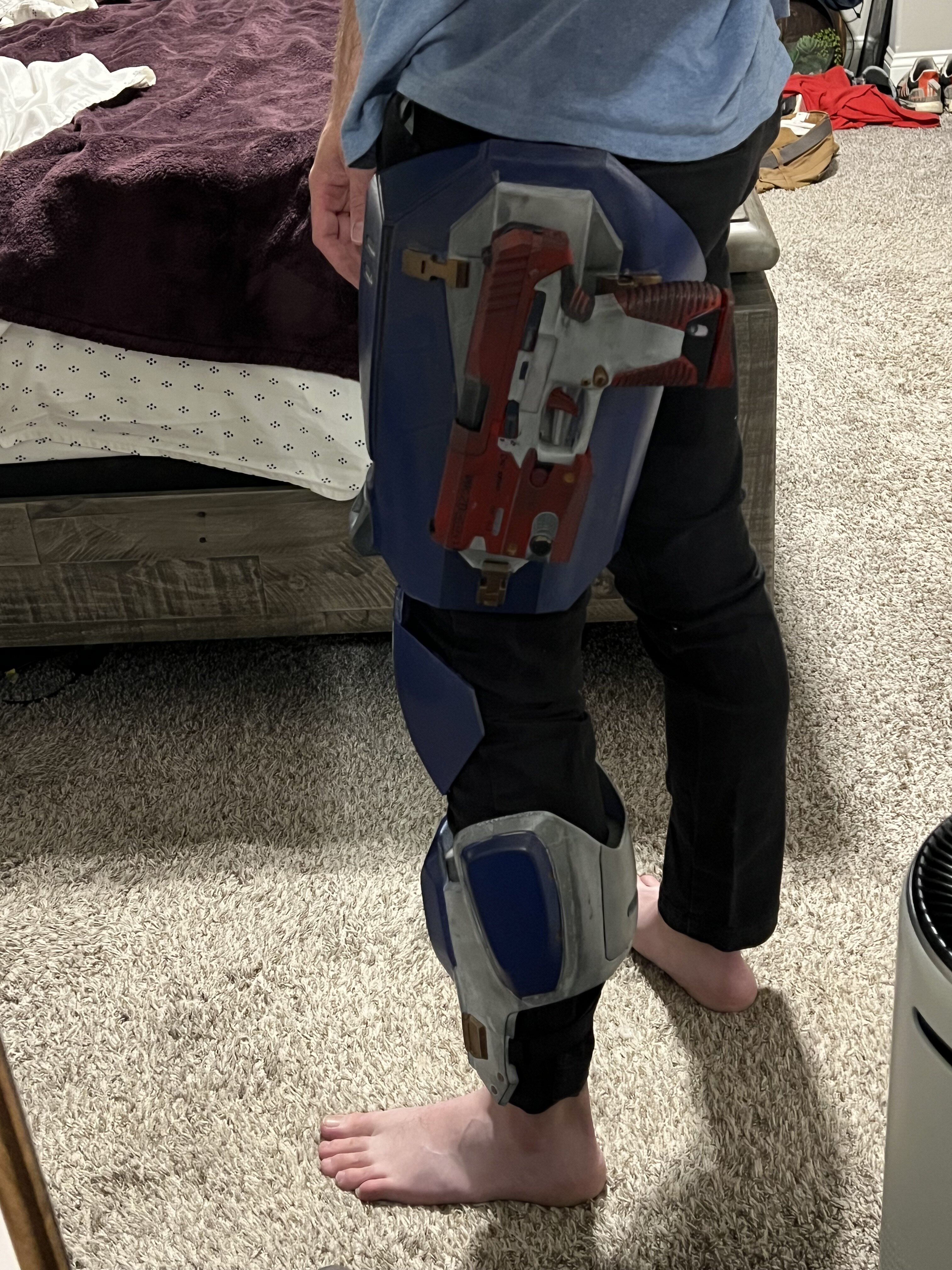 Then I got the magnet setup and painting done on my thighs. I can attach the pistol to either thigh with no problem. I’m think about printing grenades to attach to the other hip. Like how they were displayed in halo 3.