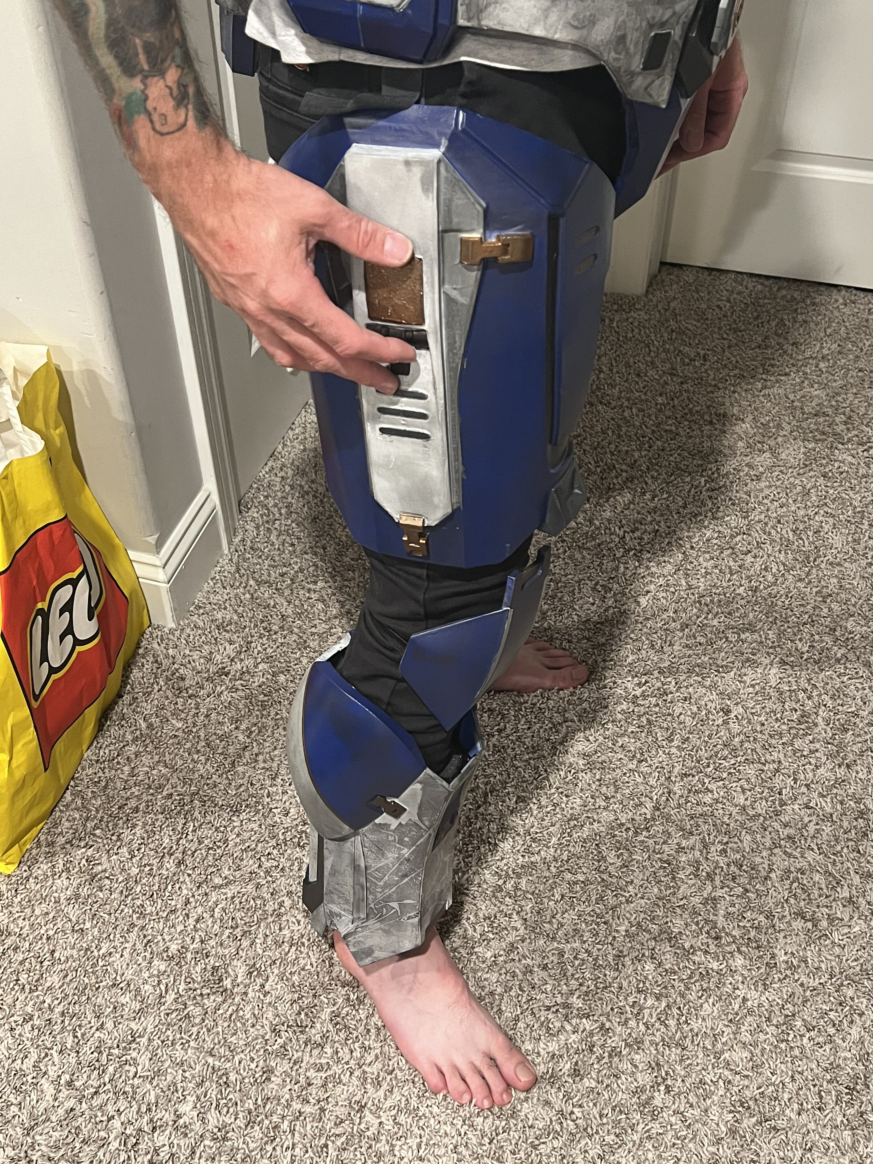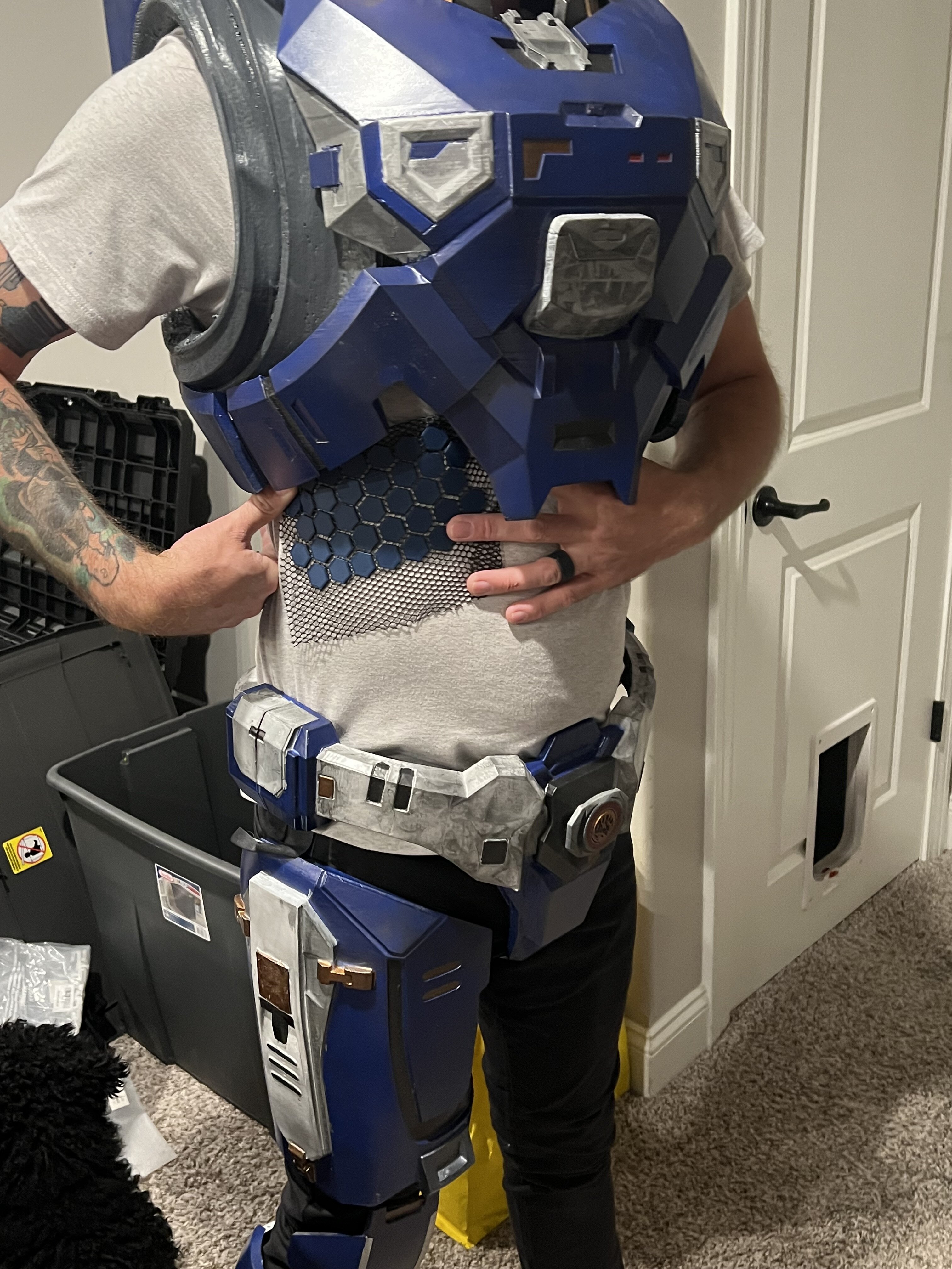 Tis complete!! Did a full test fit just now, and I gotta say I’m satisfied. It runs a little warmer just because of some layers on my chest. It’s a lot easier to walk in this one, and I can sit down!! Now to try it out at planet anime tomorrow and see how it handles in about an hour or twos time.