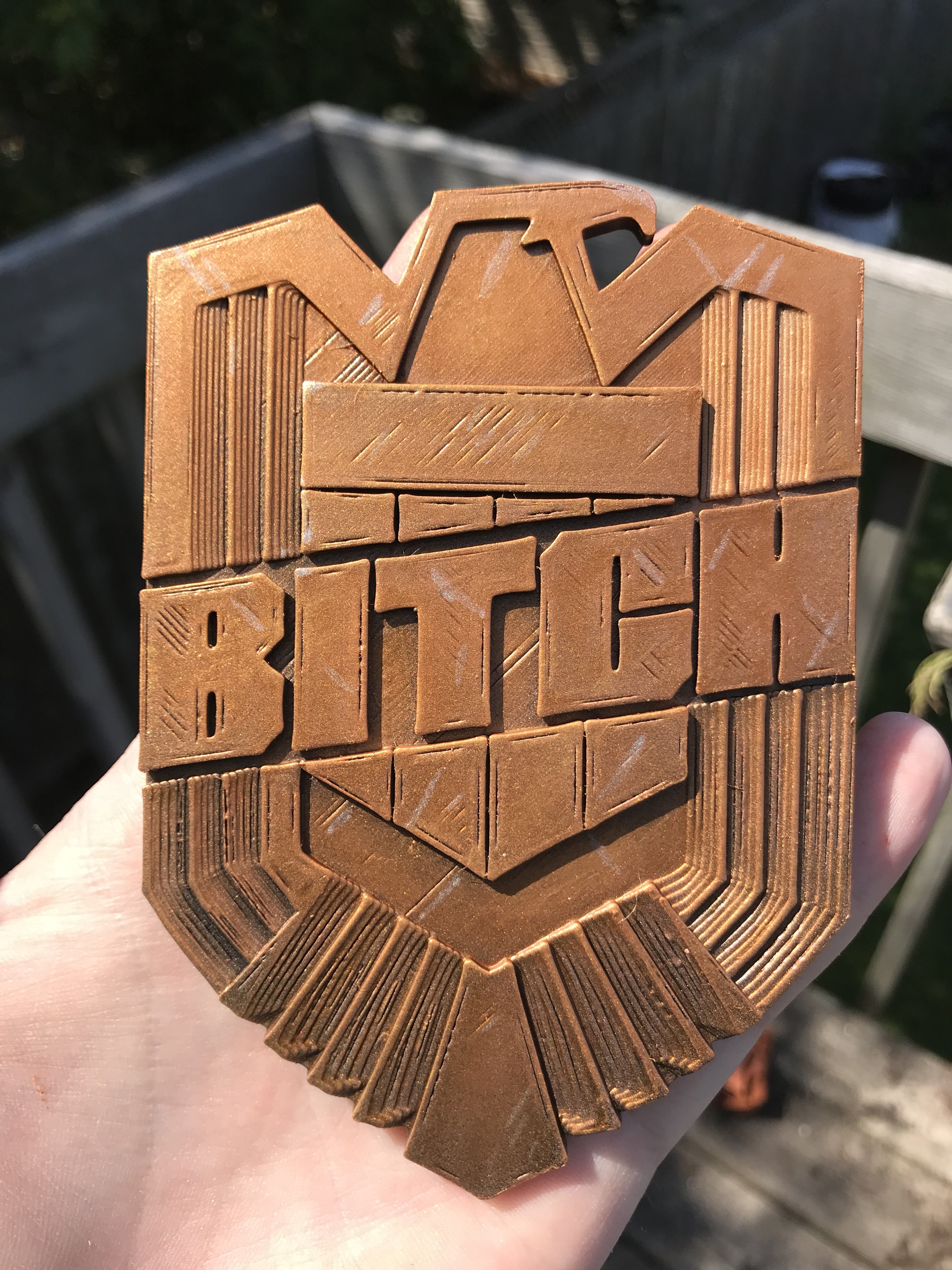 Back on track! Fully printed the outer right shoulder, the Kukri and the sheath (not pictured). Now to figure out how to adhere the piece to the bicep lol.