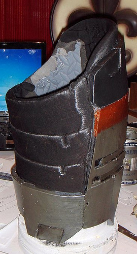 Here is a side shot of my thigh with the detals attached. I carved the detail into some foam then my wife sewed the lycra to it and in the details to make them pop