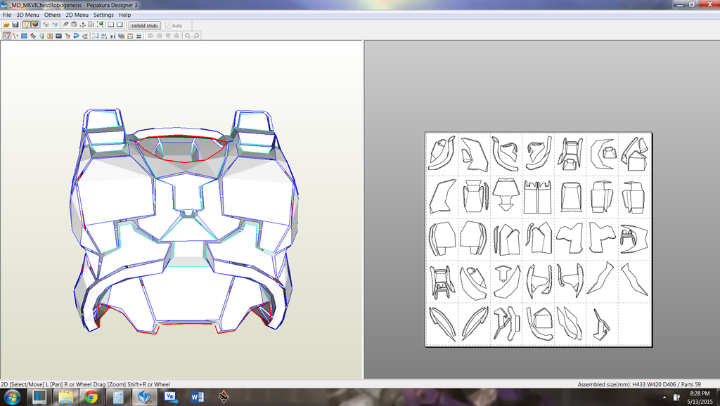 Sorry there's been no progress, and there won't be anytime soon. A sort time after my last update I suffered a back injury. It was very minor and I've fully recovered but it kept me from doing any work on the armor. Also, while I wasn't working I took some time to reflect on what I had started on the chest... I didn't like it. The file wasn't what I thought it would be plus I had issues with it's construction, all for the best I suppose. So I scraped what little I had of the chest and found a better file and paper to work with. Now here's the thing I didn't even make an attempt to start again. I leave for Basic Combat Training on Wednesday and with everything going on over the fourth it wouldn't be worth starting. I'm afraid you will all have to wait until December when I get back. Wish you all the best, farewell for now.