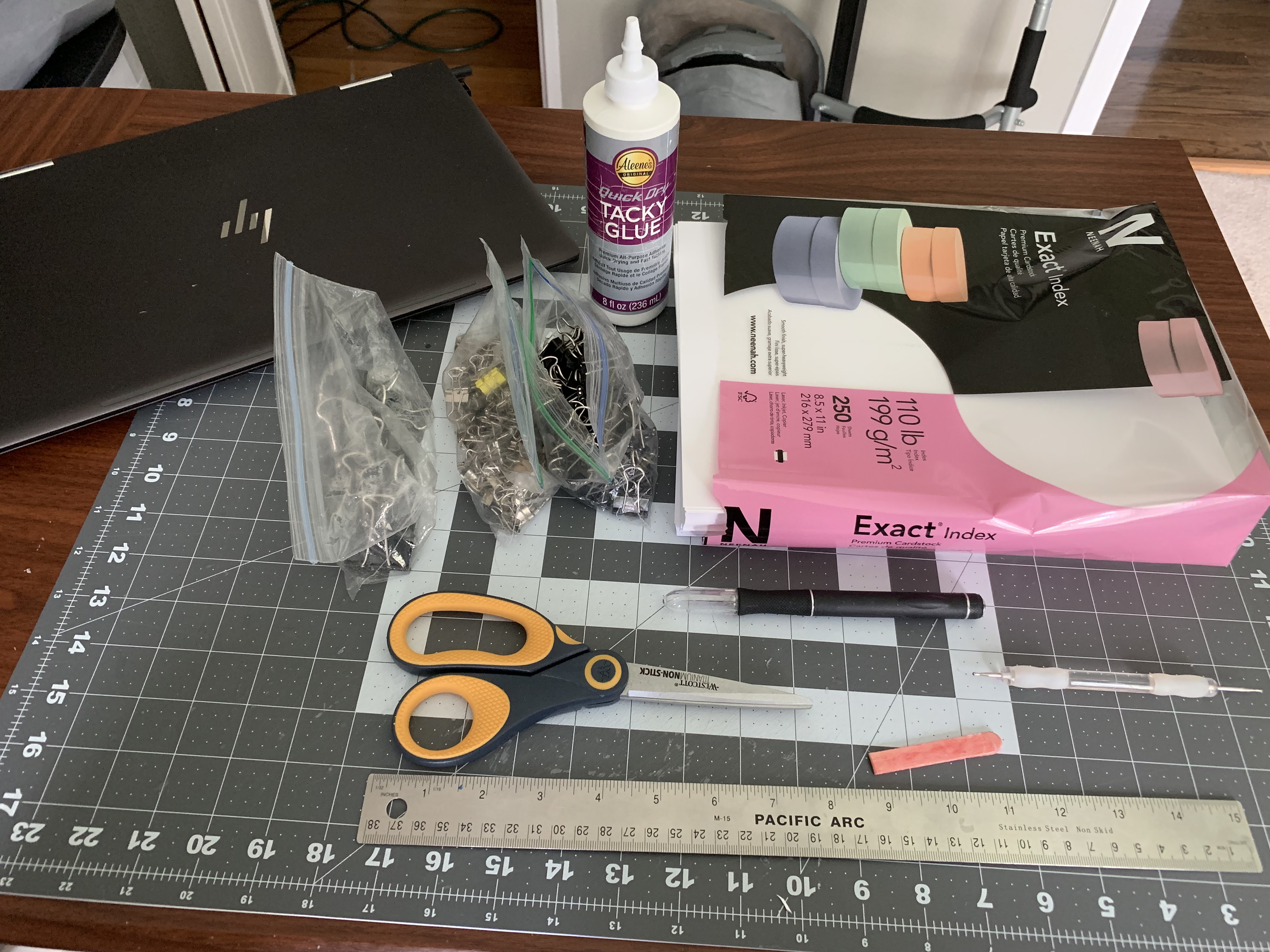 There are also some times that instead of cutting by hand, I choose to use a Silhouette Cameo to score and cut my parts. For this I just need a computer, the Cameo, some cutting mats, a removal tool, and some bags to store the cut out parts. I like to label the pages they came from and stick a scrap paper with the number so I can quickly find parts.