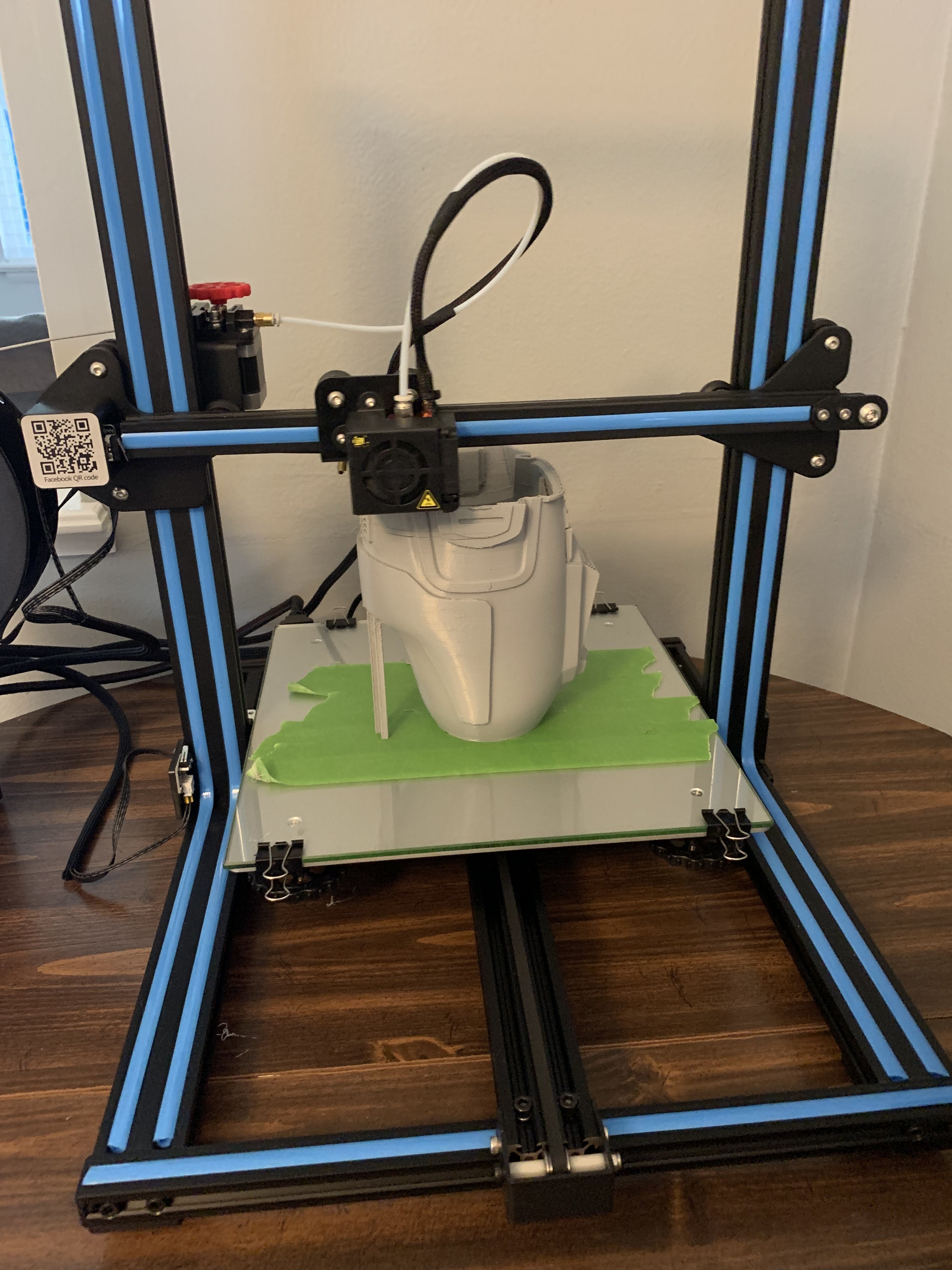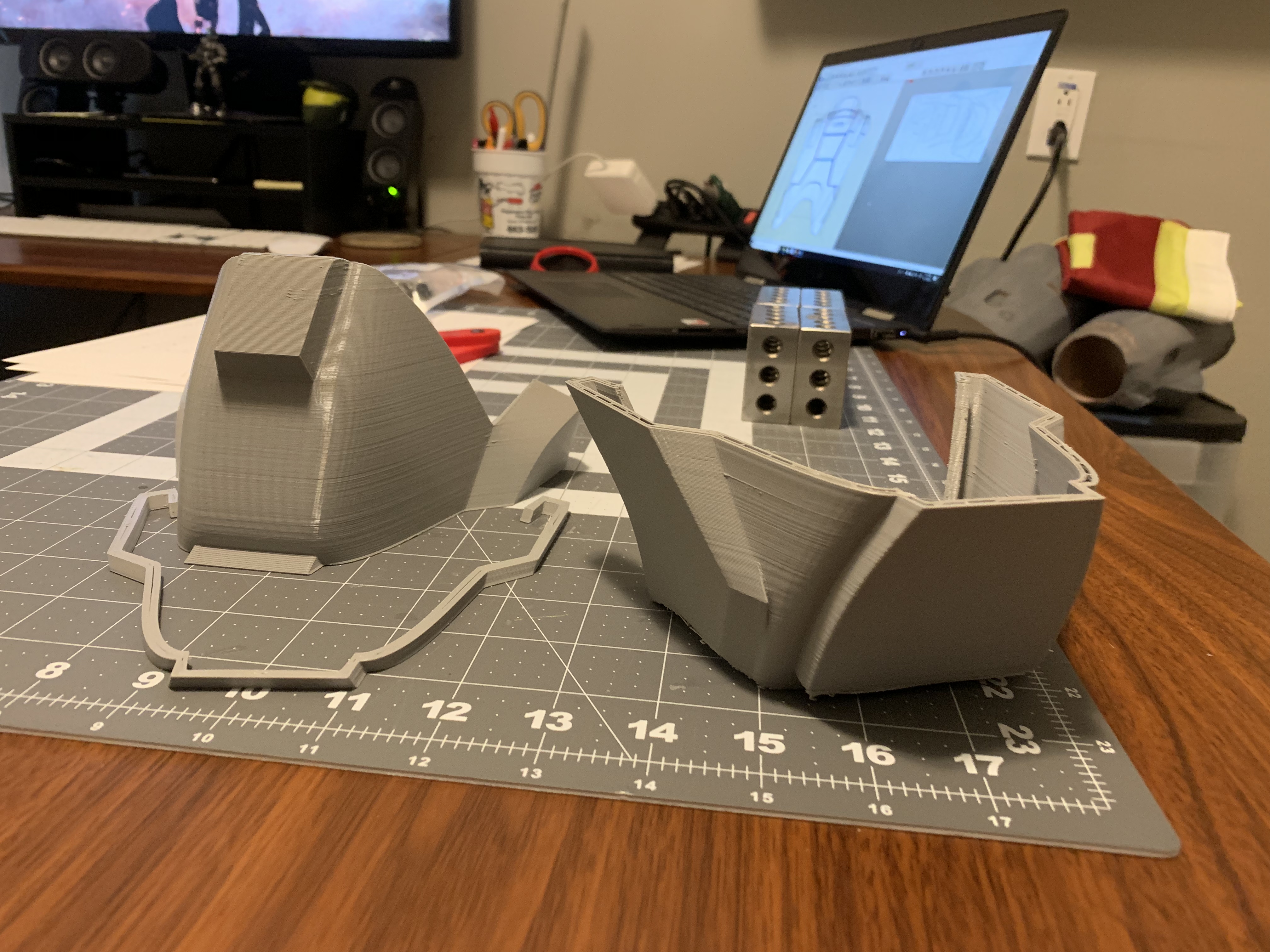 On days I'm mostly at home I've started 3d printing updated armor parts. Any that happen to get done in time for HOD: Chicago, awesome. Any that don't, well they'll be done someday, there's a v1 of every part they'd be replacing anyway. I've been starting with parts that I'm less happy with either the scale or level of detail, but also that are relatively quick to print (e.g. takes less than a day given my chosen settings). Therefore, the knees were up. Setup on the knees was 4 outer shells, 5% infill, 0.3mm height (most of the surfaces are pretty flat or have virtually no detail, so sanding is easier and why I chose 4 shells instead of 2-3). Print time on my CR-10 was ~10hrs.