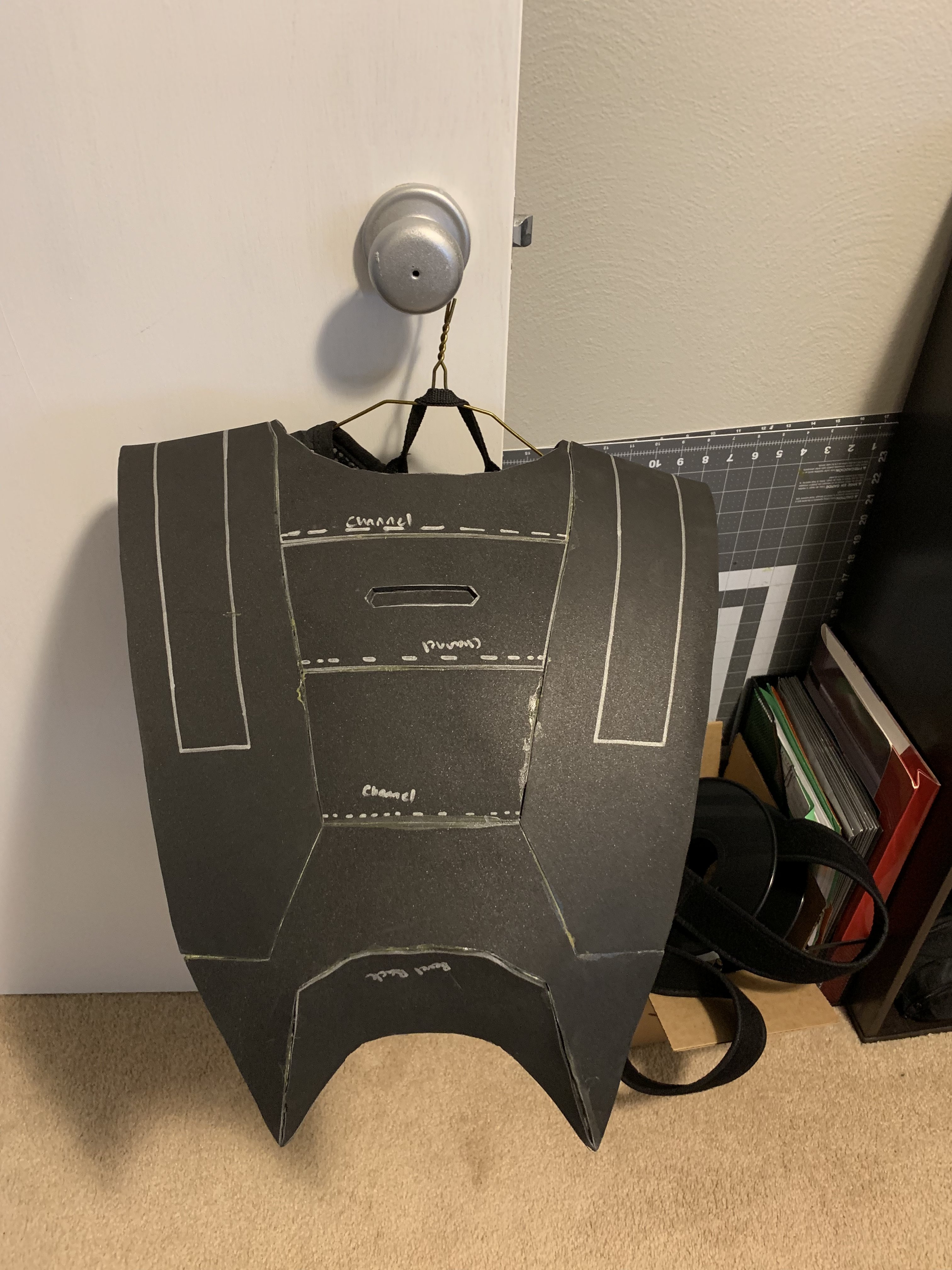 The main thing I'm focusing on is strapping this week. So far I have a tactical vest that I'm attaching all of the upper body and back plates to. I sliced out the front of the inner chest to keep only the back as I found that the most comfortable setup for me to move around, and considering most of it gets covered it was worth it.