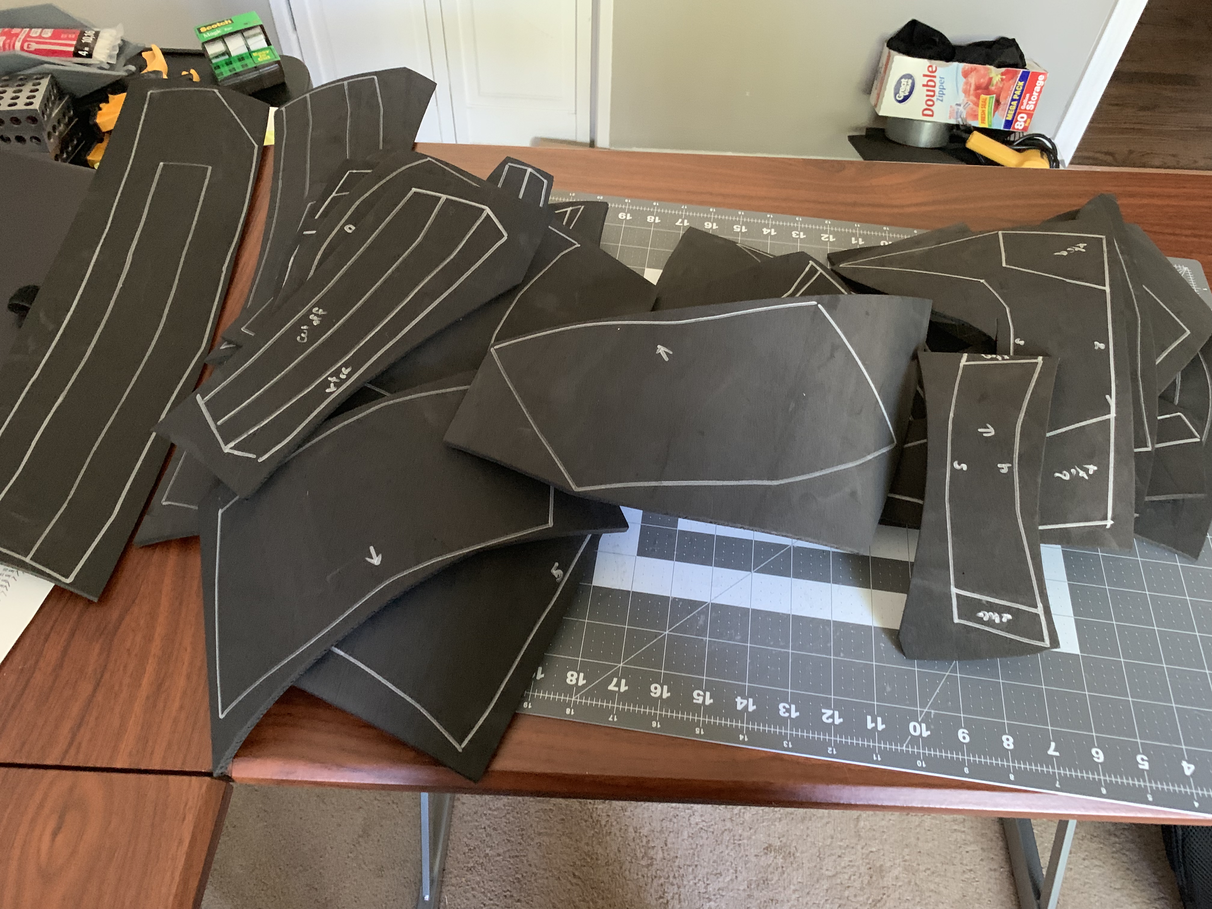 The inner chest has been sized, templates printed, and transferred to foam. I bought 10mm foam from TNT Cosplay. I already have plenty of 6mm, 4mm and 2mm for details on various pieces. Plan to start assembling the chest core this week.