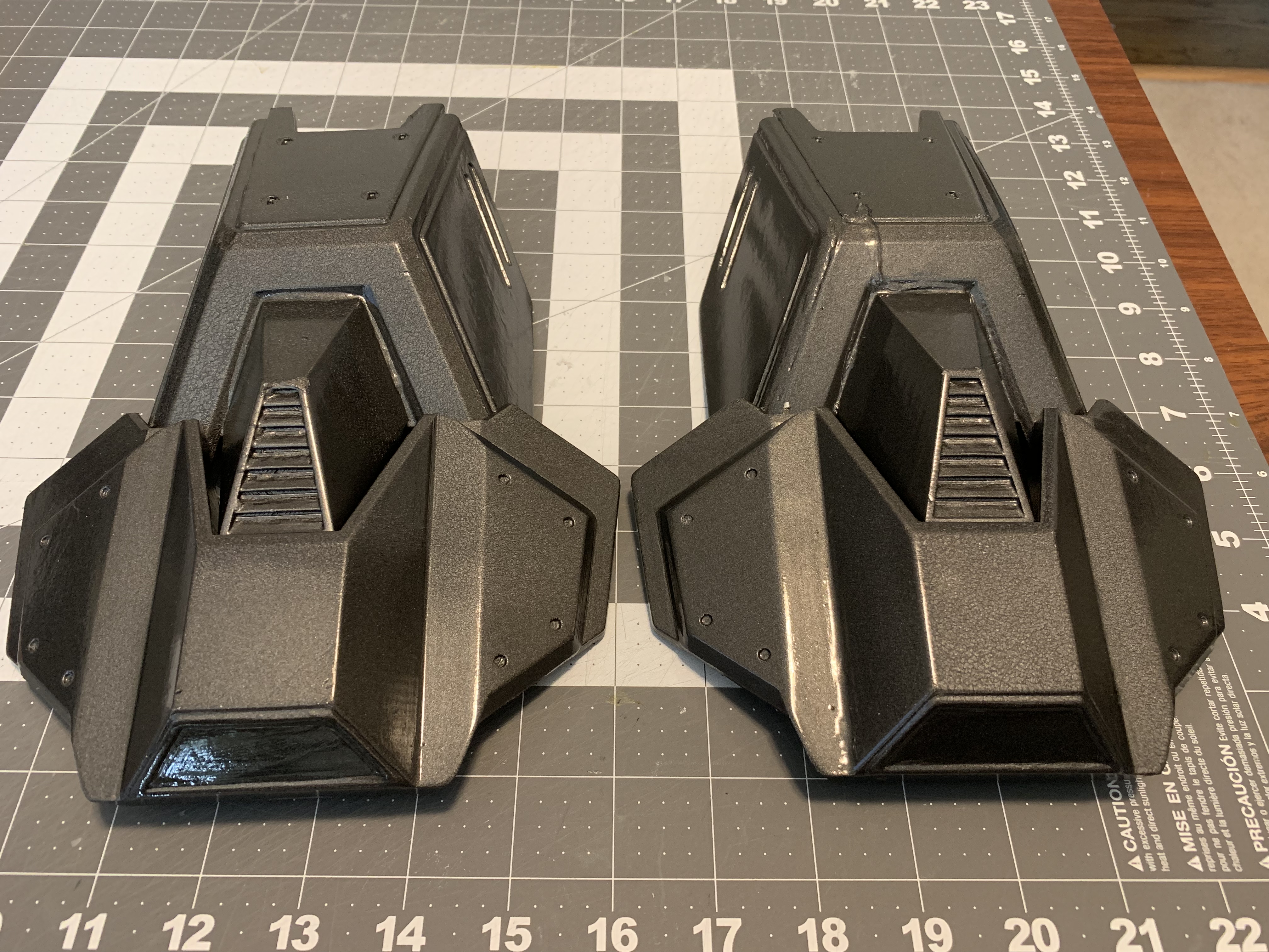 If there's anything about the build that I would say I'm unhappy with, it'd be the fitting on the shins and calves. Because I built the part split, it doesn't match up well when put on. I plan on taking 2-4mm foam and attaching it to the shins and be wide enough that the foam will slide behind the calf then paint that with everything else to make it look better. Enhancement on the shins/calves will be 3D printed and remain split along the side for easy assembly/removal.