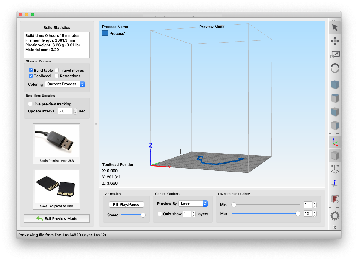 In the initial screen, you don't see a difference, but upon hitting "Prepare to Print" you can see just those layers I needed ready to print.