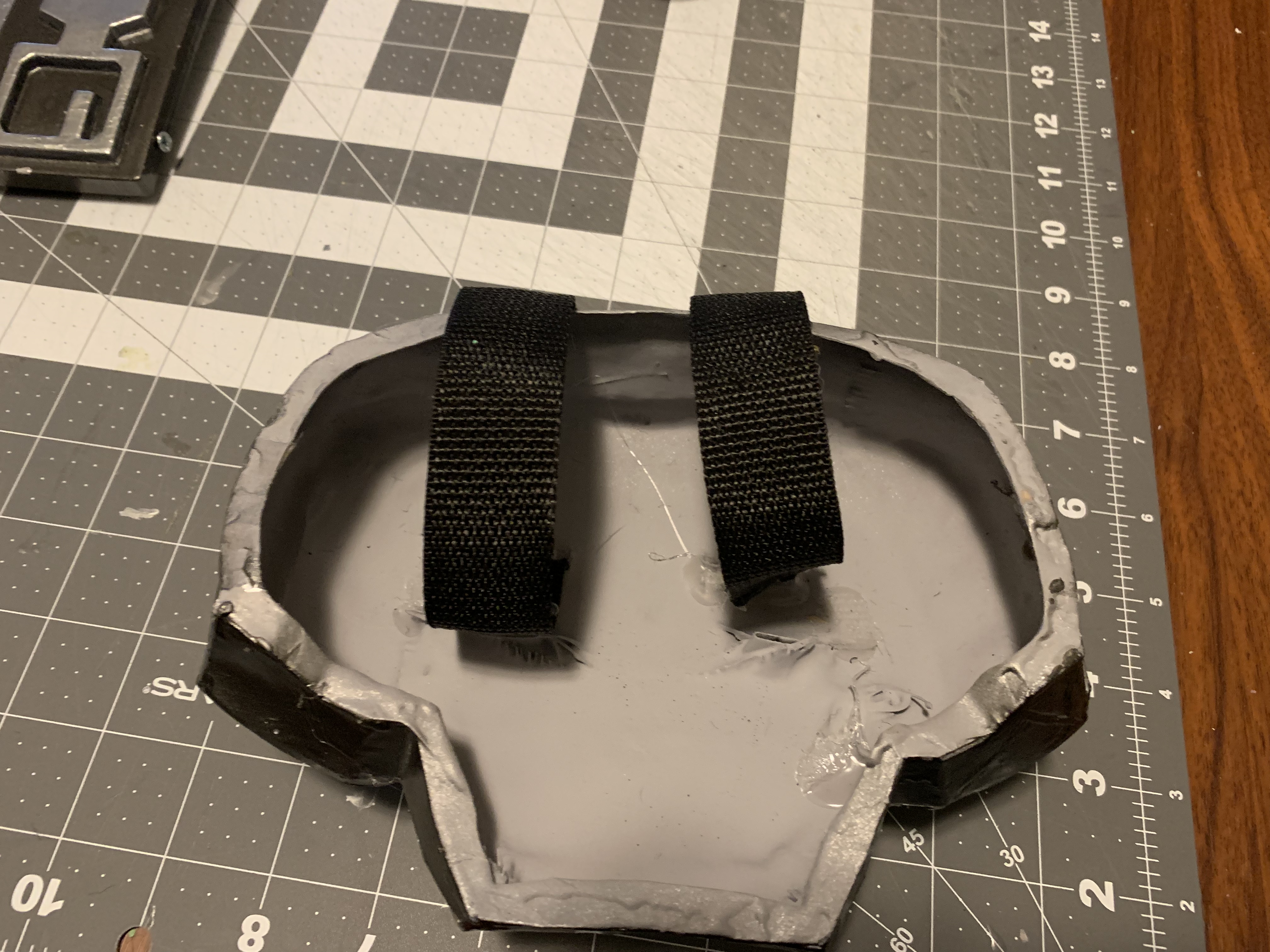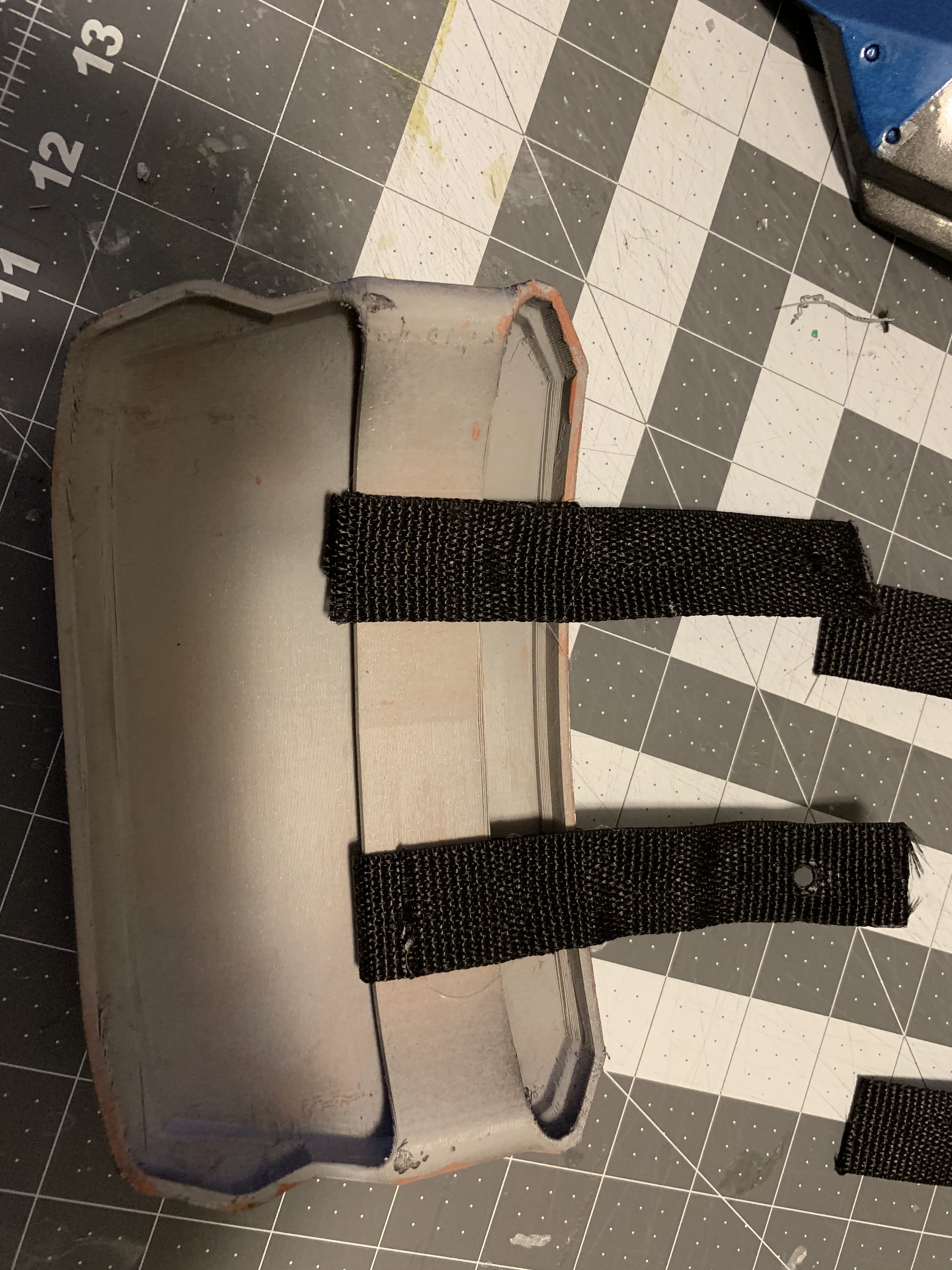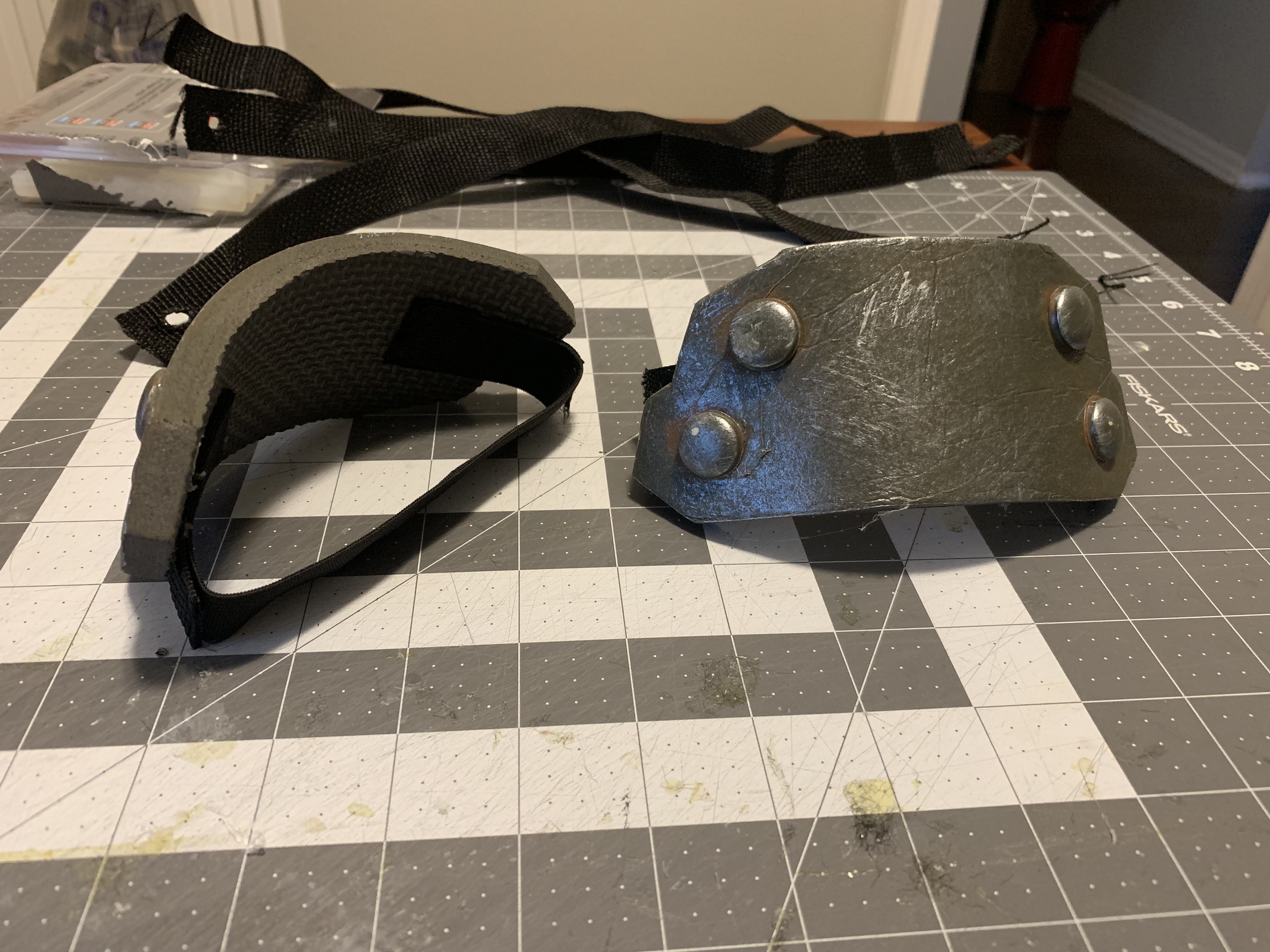 Over the past two evenings I cut down the thigh plates and sanded the edges. I'm going to seal the now sliced edges tonight before testing straps and painting.
