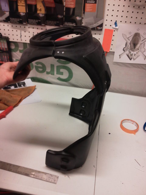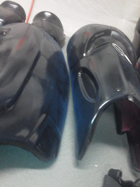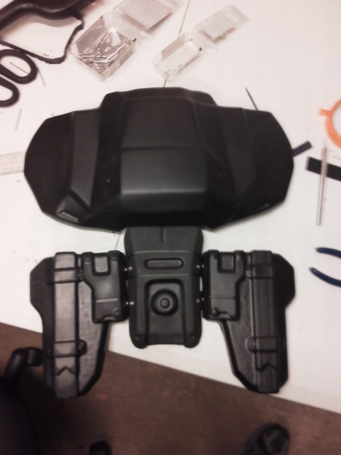 I was able to get the majority of the torso section done (trimmed, sanded, riveted, basic strapping)
