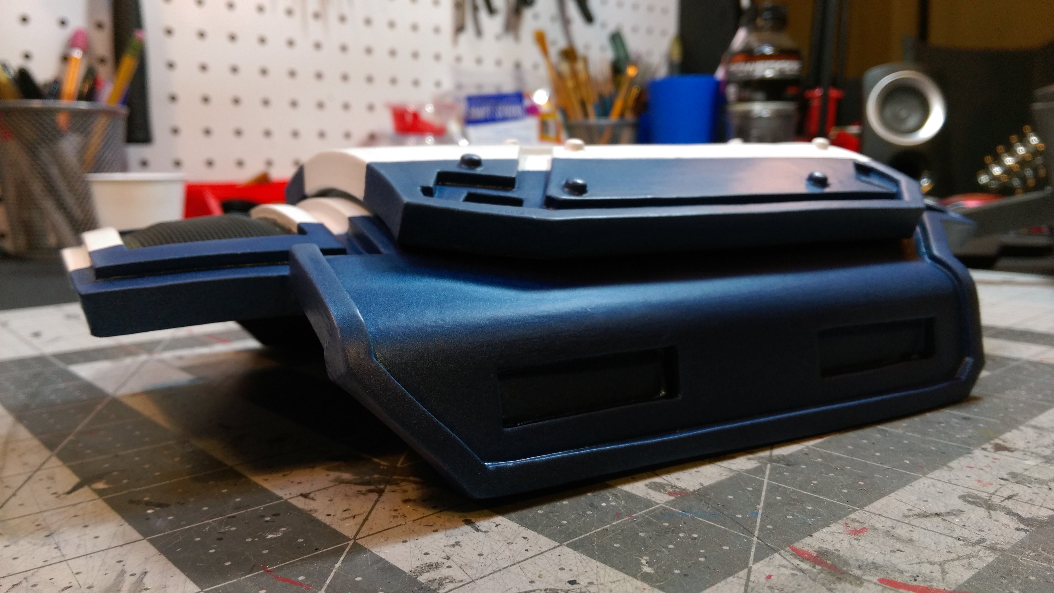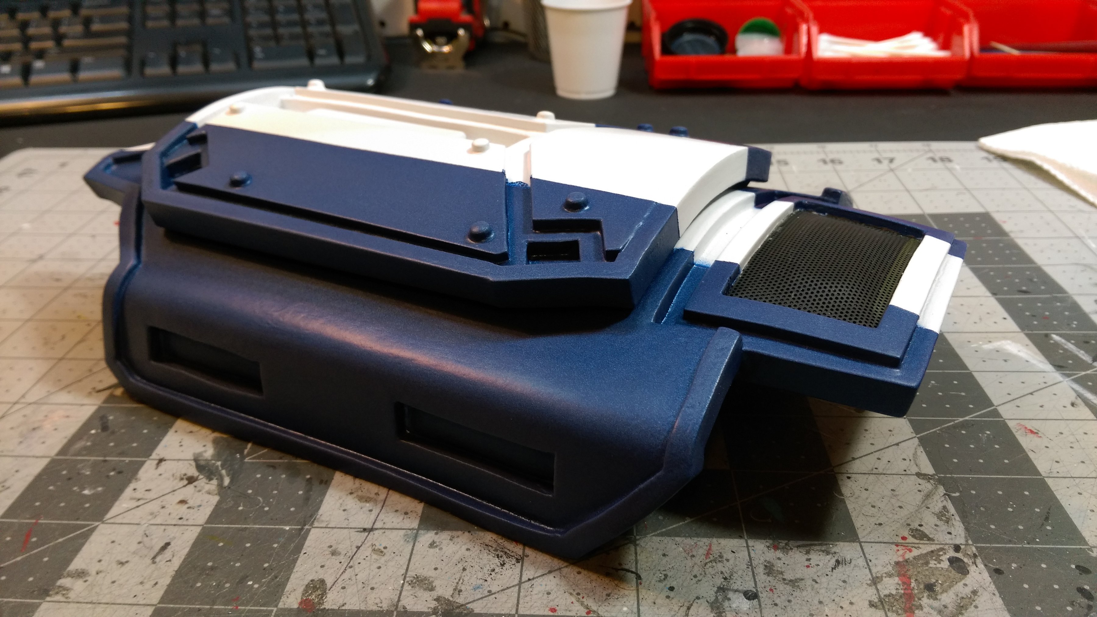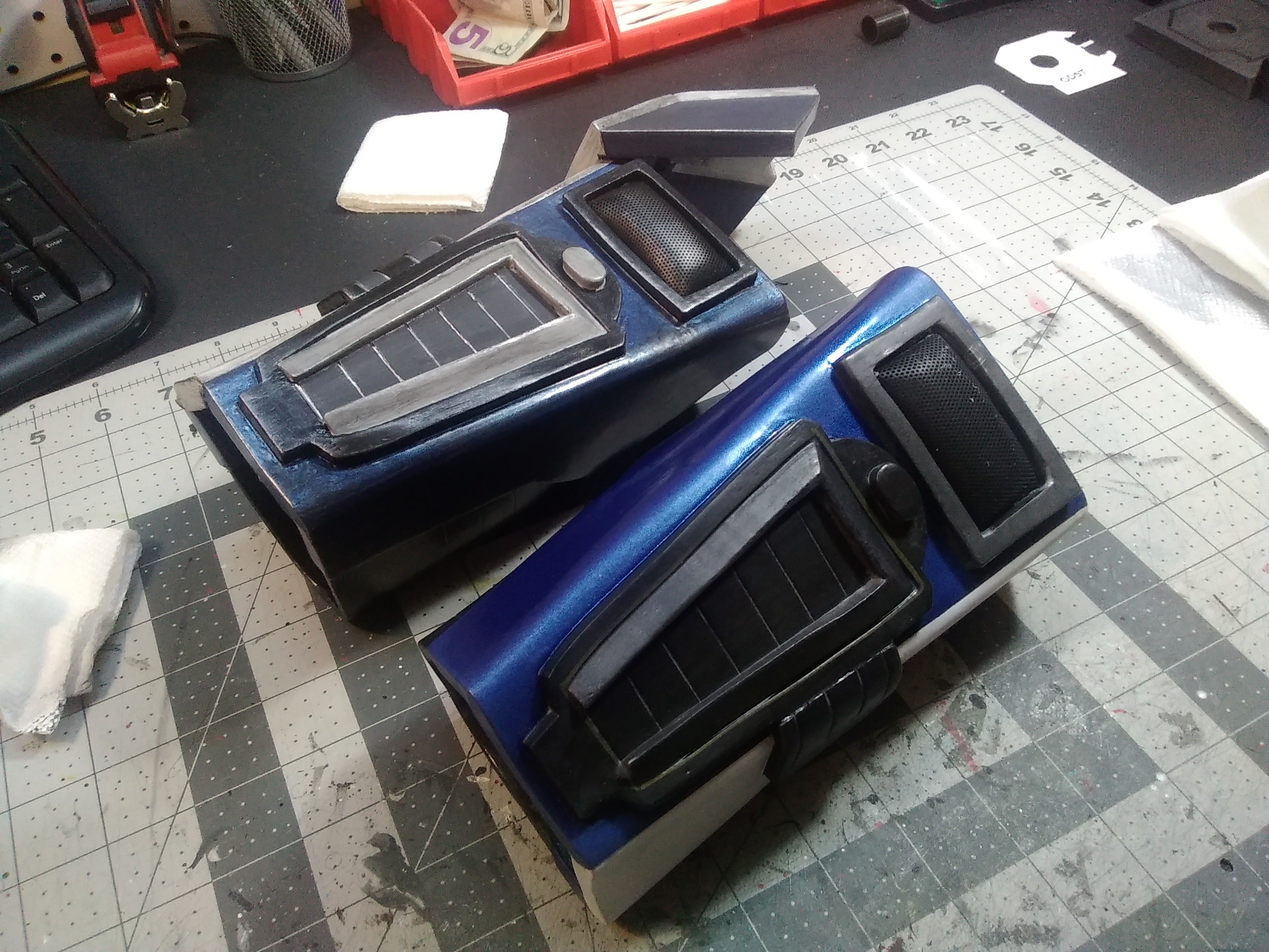 I also challenged myself to incorporate magnets on the thigh plates and build the magnum pistol with magnets inside to attach to the thigh plate. Because of the humidity in the Southeast part of the country, I decided to take a shot at adding fans into the helmets. Again, first time for everything right?
