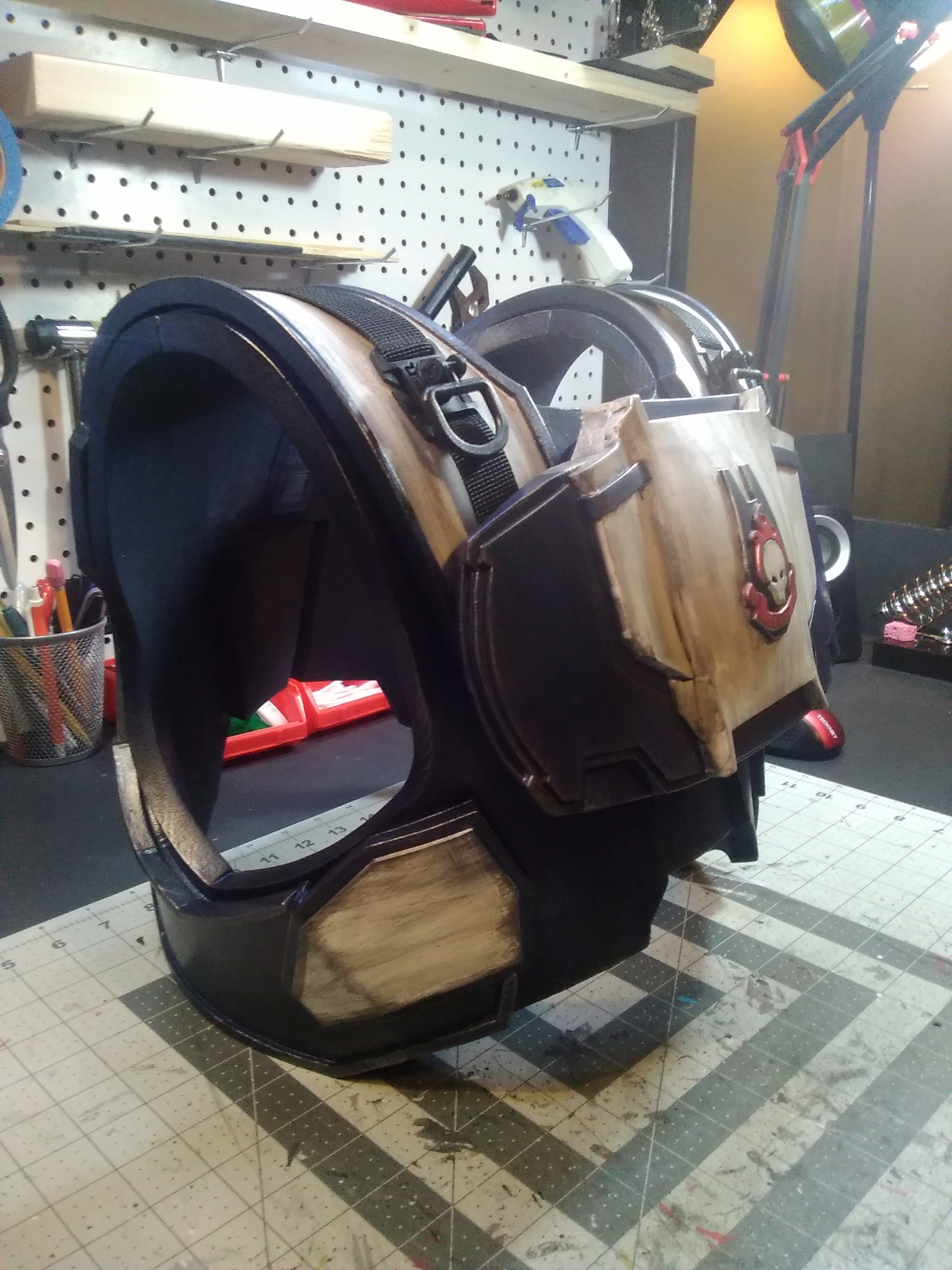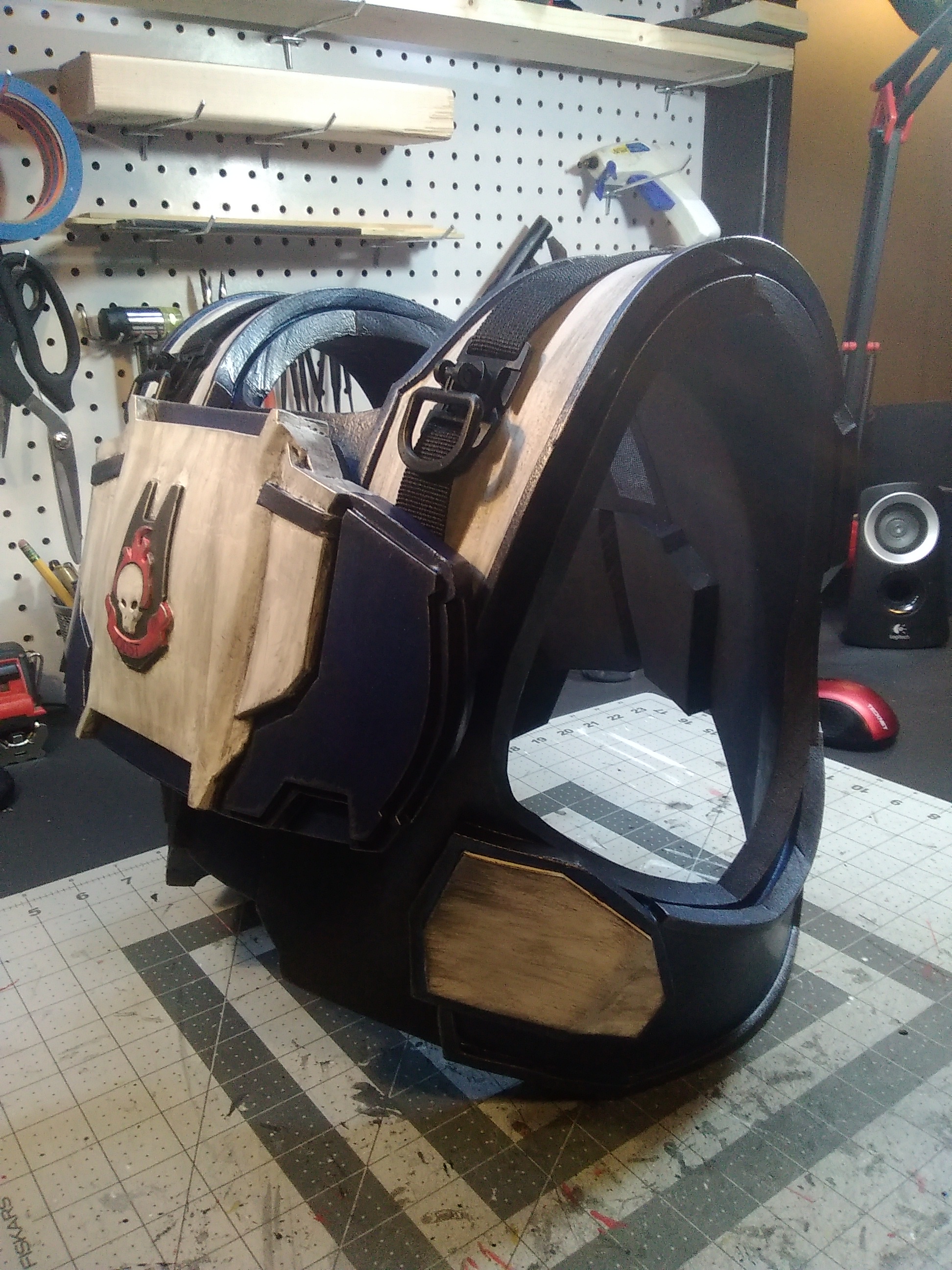 As a disclaimer, I know the armor is not game accurate, but its for the kids and they love it just as much. There is a Halloween costume contest at a local fair in our area this weekend and it will be the first time anyone has seen the armor in its completed state. I'll come back to the thread and post those pics later. Hopefully with a little trophy. LoL.