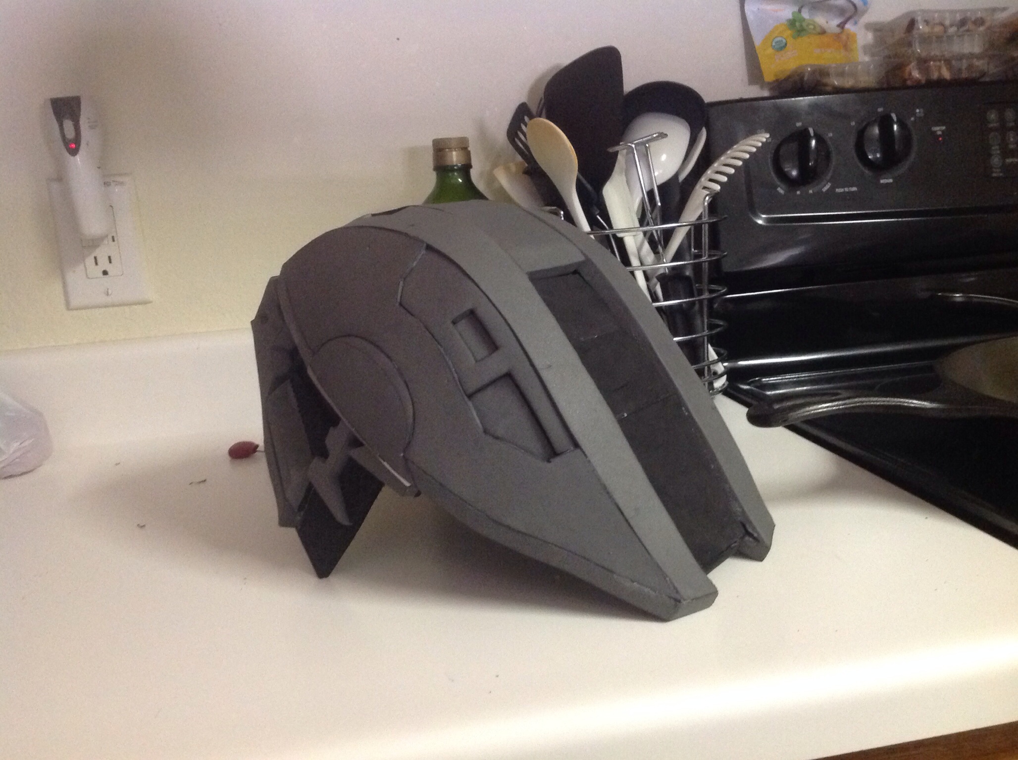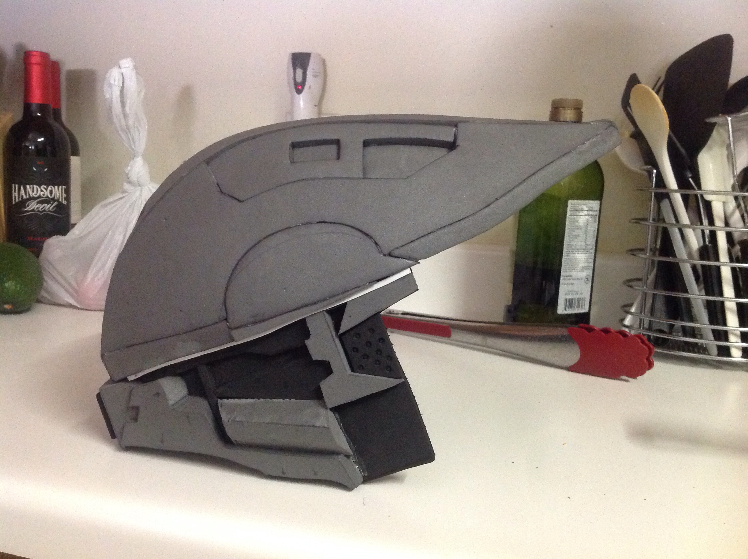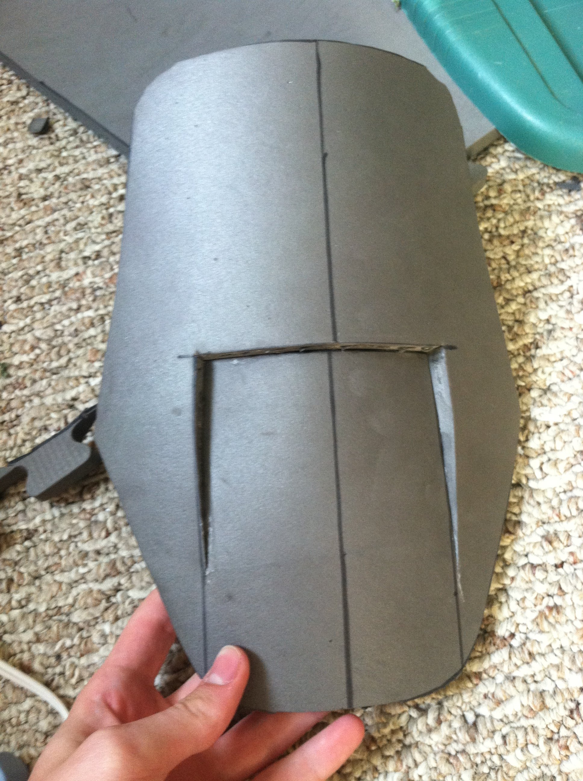 Well I'm glad you want more pictures because I have two more. School is starting to bog me down and htere were medical issues in my family but I have a few hours each day and I found new tv shows to watch on Netflix so production is going well now also the medical issues have been resolved. I really need to go to an army surplus store and buy bdus and boots for the ODST. I also need to order reflective film for the visor I need to make the visor I need to finish the helmet I need to make boot coverings I need to make the shins I need to strap the hip plates and pelvic plate to the belt I got. I need to paint a bunch.... okay I think that's all I need to do. Bad part about this stuff is I can't do bondo or spray painting in the dorm. I need more money for this project too.ah okay.makes sense