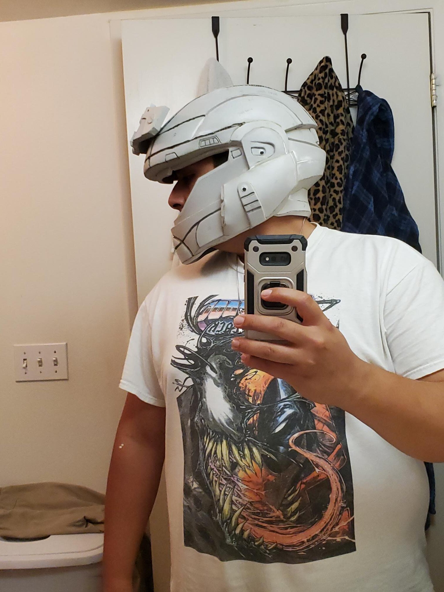 I feel like I'm looking at an entirely different helmet after you painted and installed the visor! Well done, I have yet to conquer a foam helmet myself haha