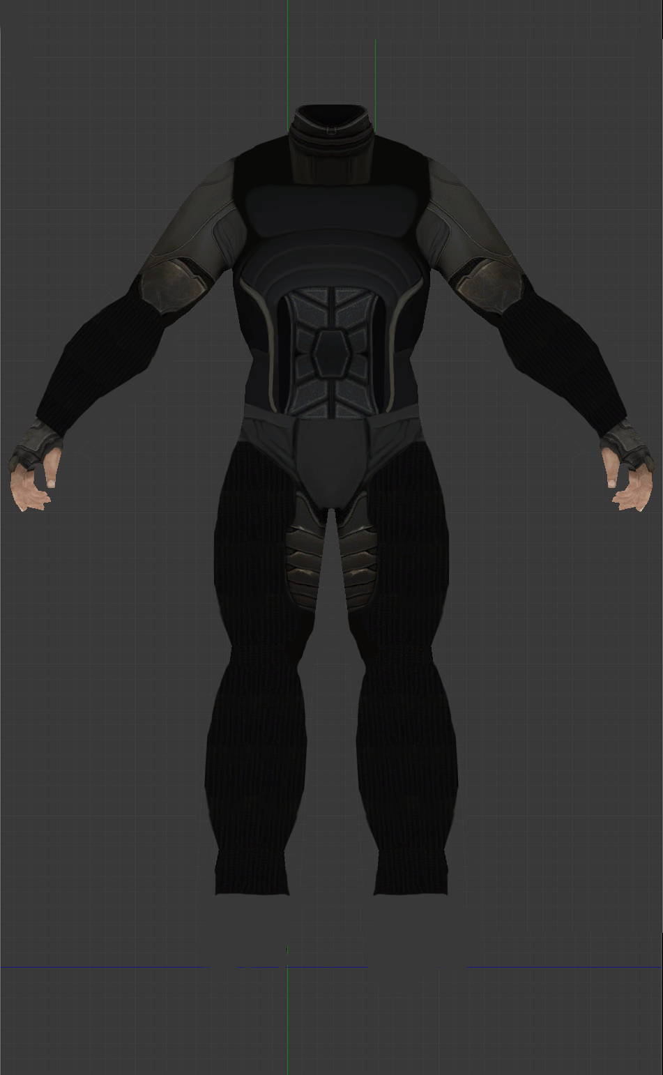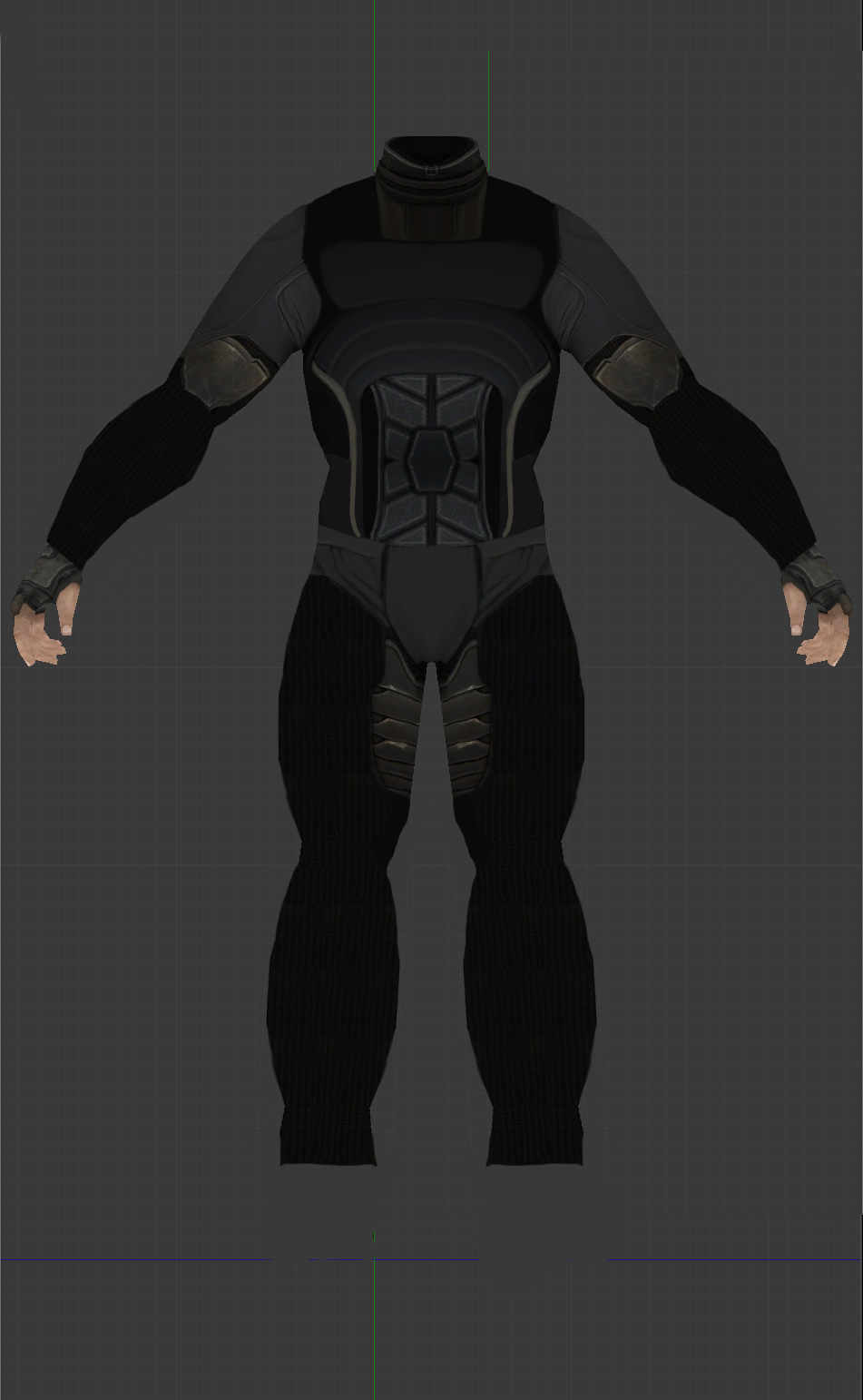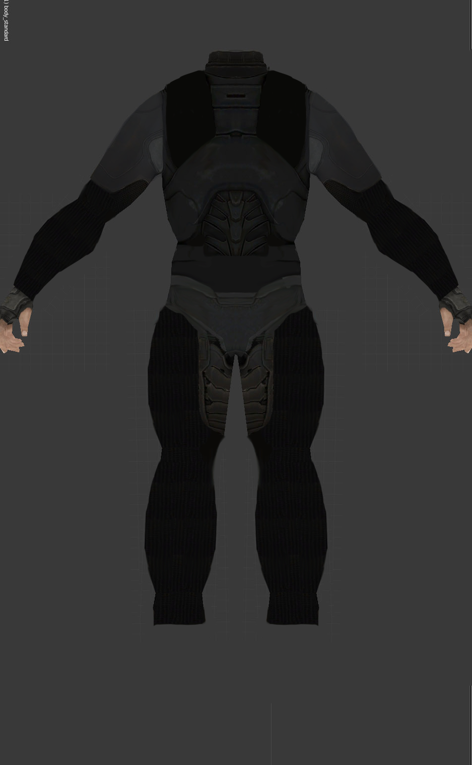 Due to the nature of the 3D models being interwoven with the base layer of suit, I had to improvise for what wasn't shown. Considering what will be visible when wearing the armor plating, this is a reasonable reference for the undersuit. I'm considering a cheap printing for one of those morph suits over some padding, but again it all depends on how it can be worn with mounted armor. I usually use BDUs, and sadly I'm more of a woodworking guy so my sewing isn't so great. Still, will provide updates into my little experiment here.