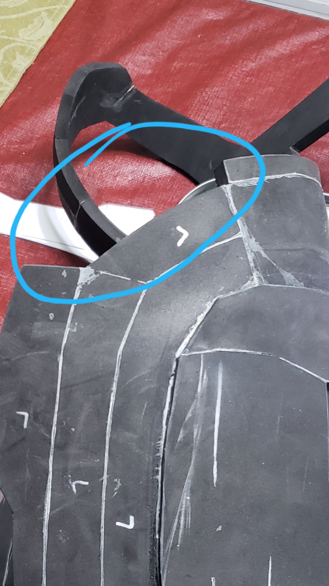 It'll probably be more dent and ding resistant made with HD Foam but then again, it's the shins. Cheap foam getting beat up? BATTLE DAMAGEAlright... Dilemmas... For those you who have been following this thread, I want to ask your opinion. As you know my rebuild started last year with the shins. Those were made of reliable puzzle mat foam from Walmart. Now the recent armour parts that were completed were made with HD Foam by Lumin's Workshop bought from Arda Wigs Canada.