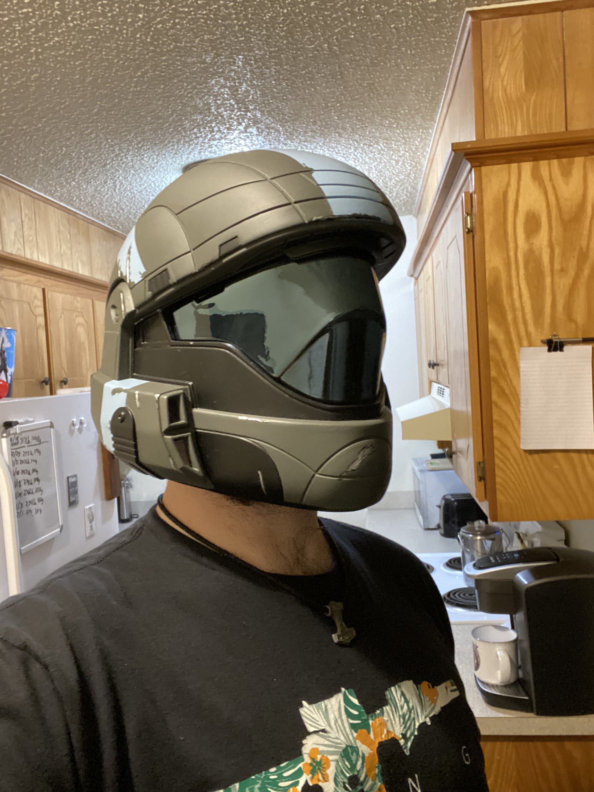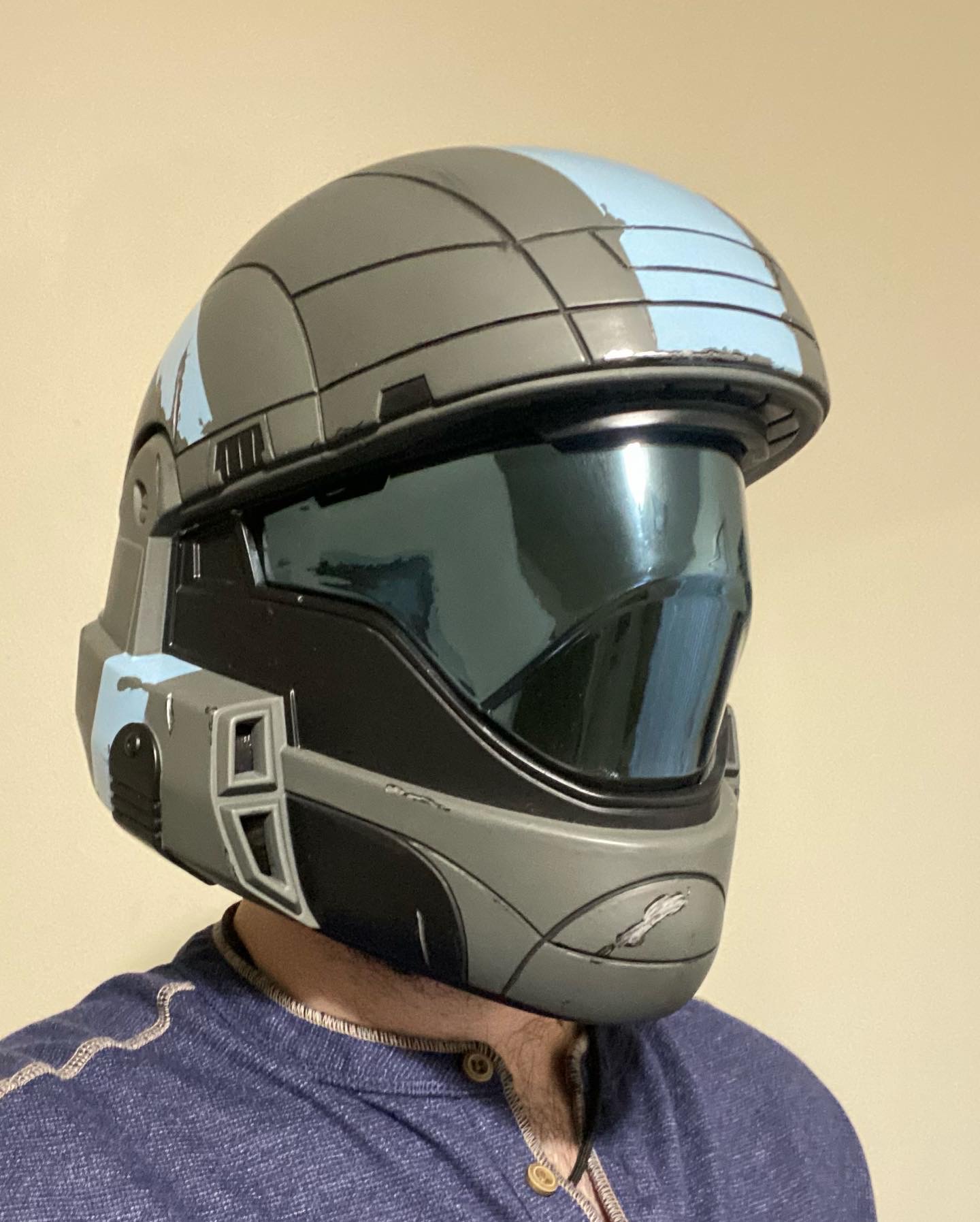 Painted the helmet. Waiting a day or two for the paint to harden so I can black/brown wash it. Then I’ll clear coat it and attach the visor. Seeing this beauty in all it’s glory has strengthened my resolve to work on this armor. Also glad I went with a Reach style paint scheme. I just love this blue and want to show more of it