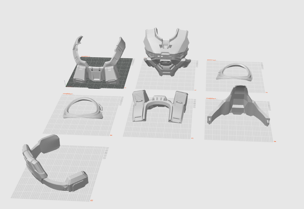 Let's start with materials. The armour will be printed in VarioShore foaming TPU and coated in Urecoat, and the helmet will be resin casted.