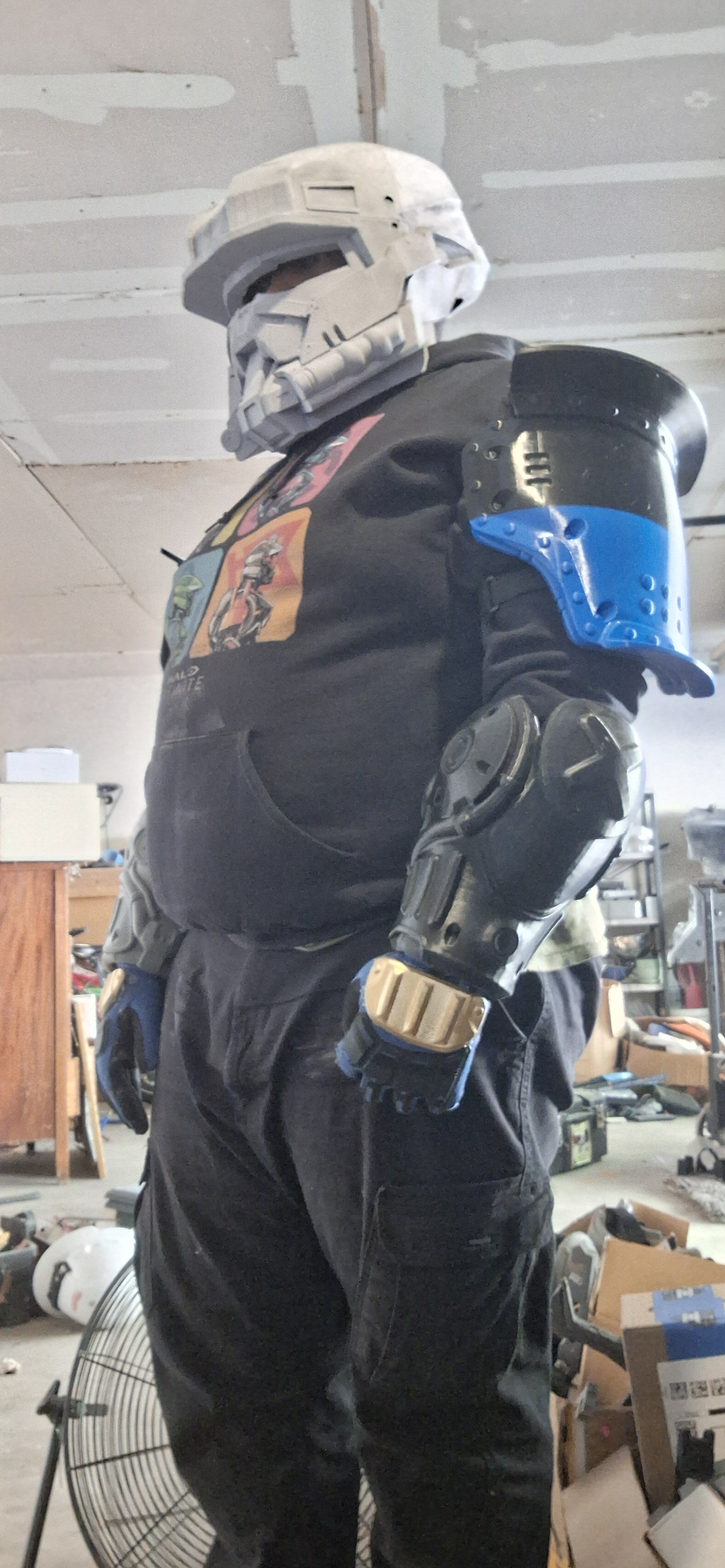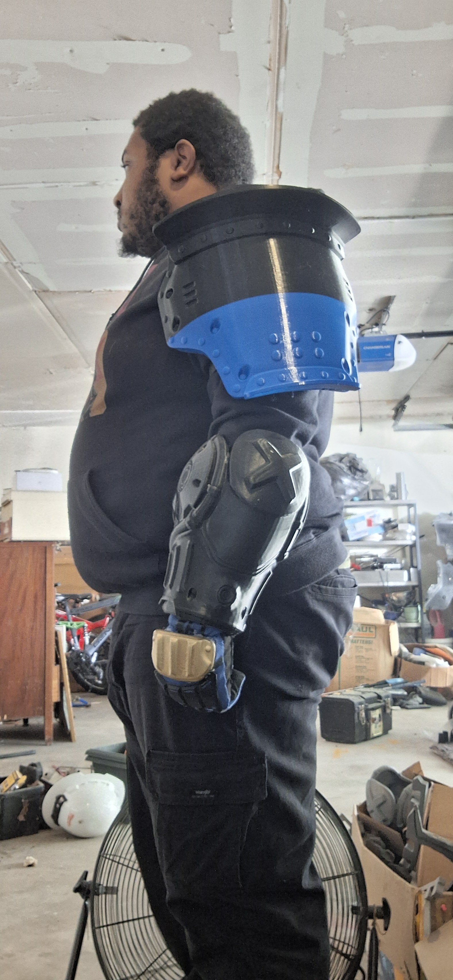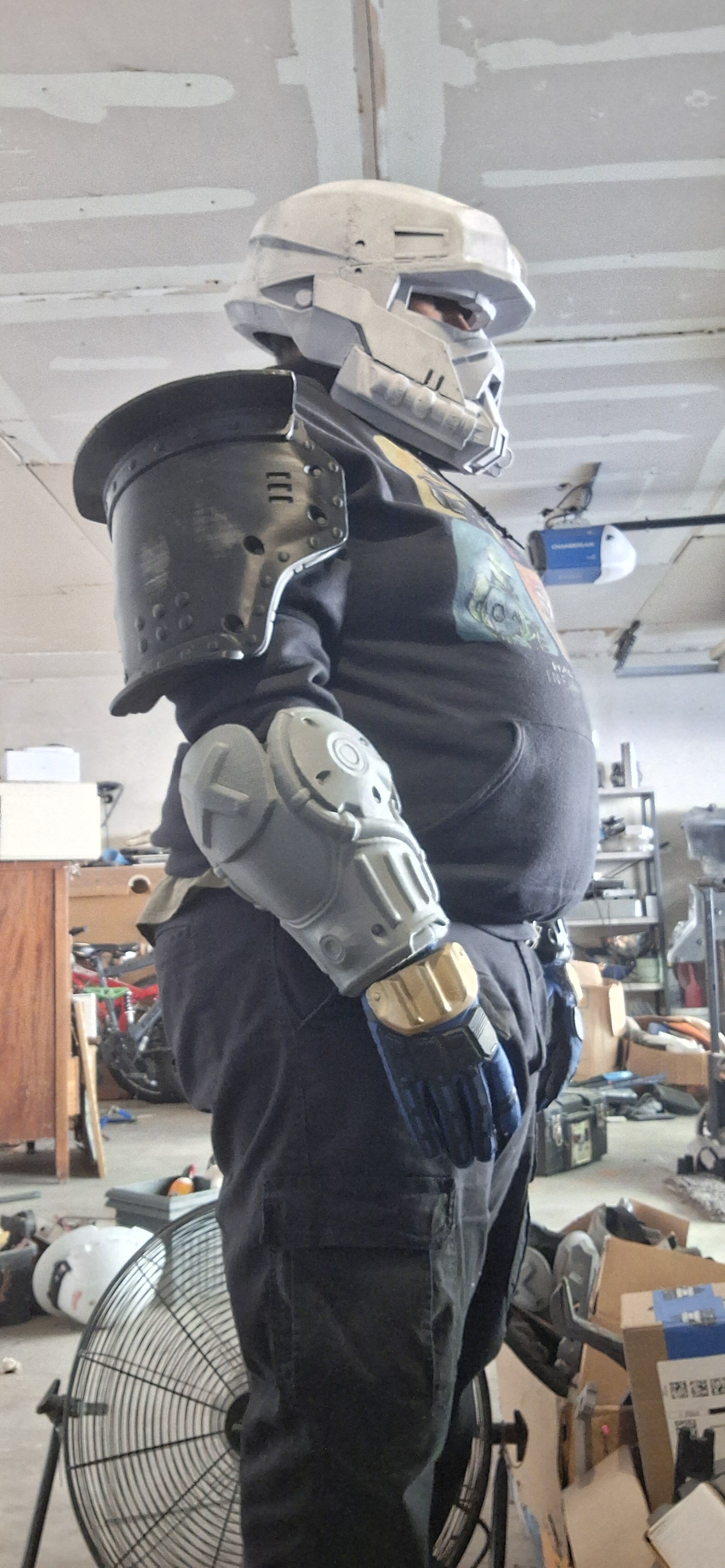 Now another update: I got the upper part of the suit done(ie the arms, shoulders and glove) now it's on to the lower parts