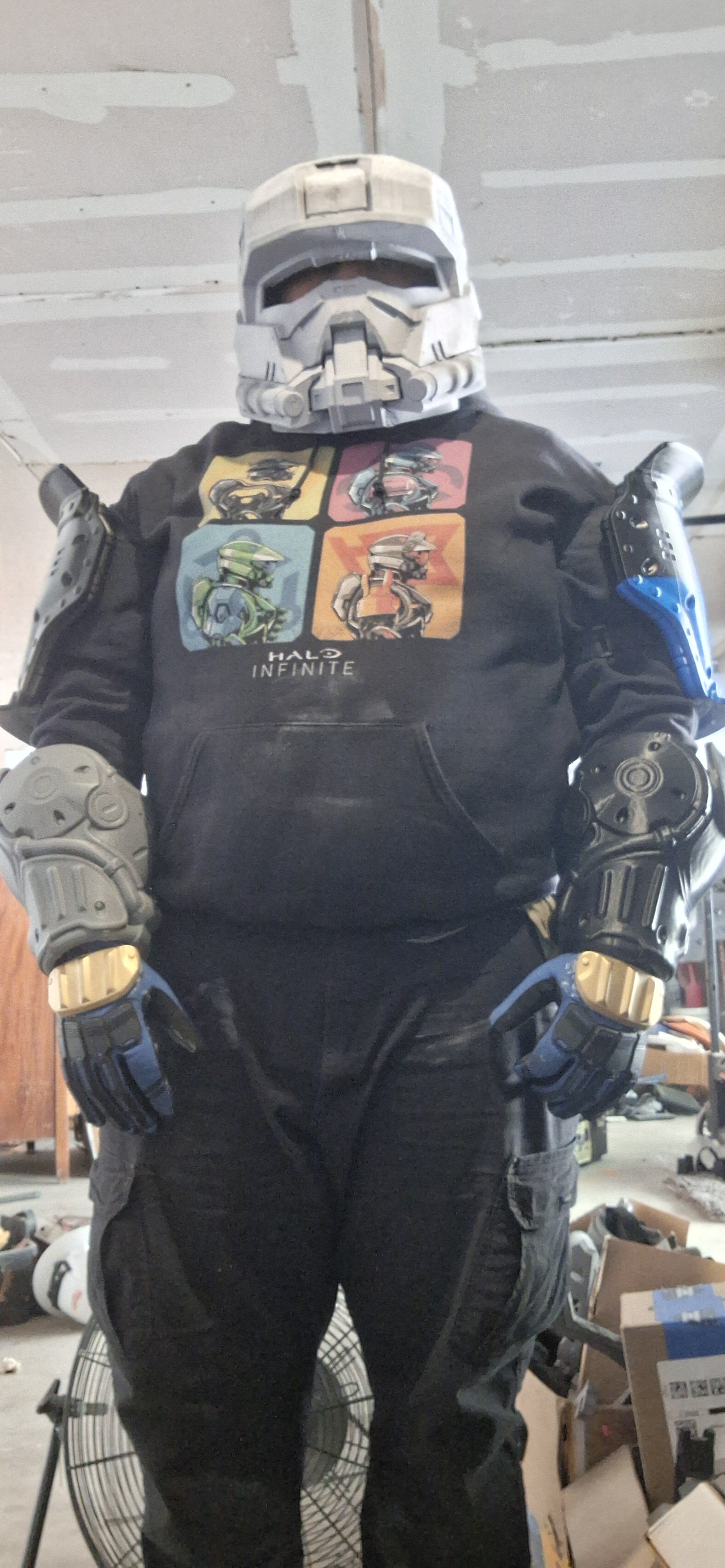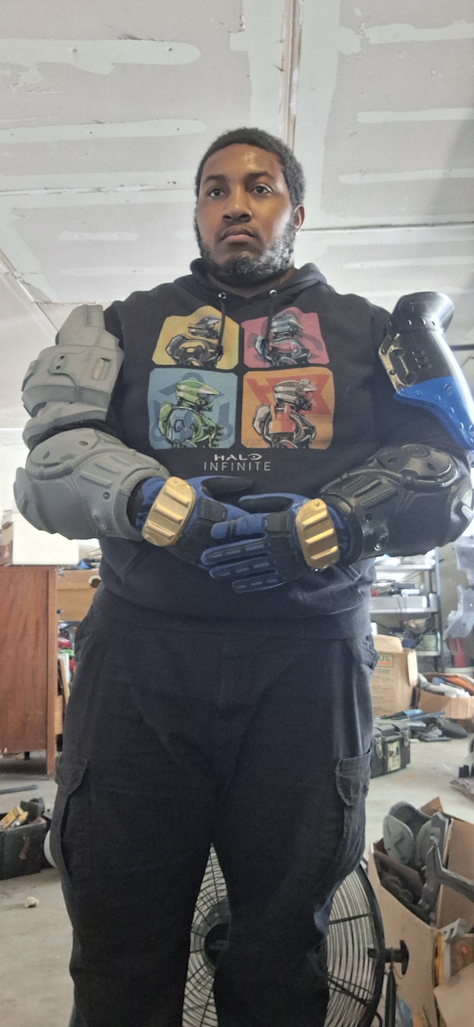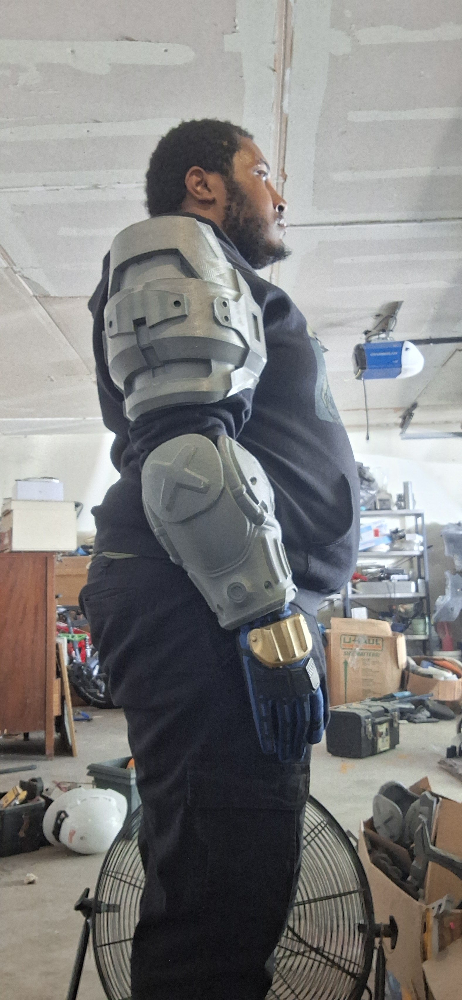 Now another update: I got the upper part of the suit done(ie the arms, shoulders and glove) now it's on to the lower parts