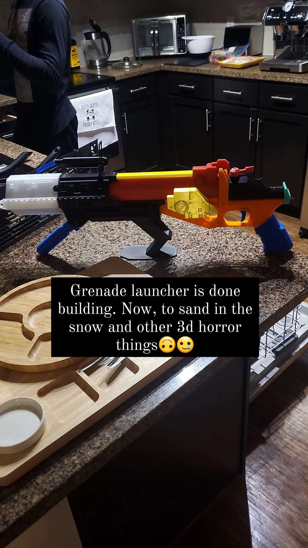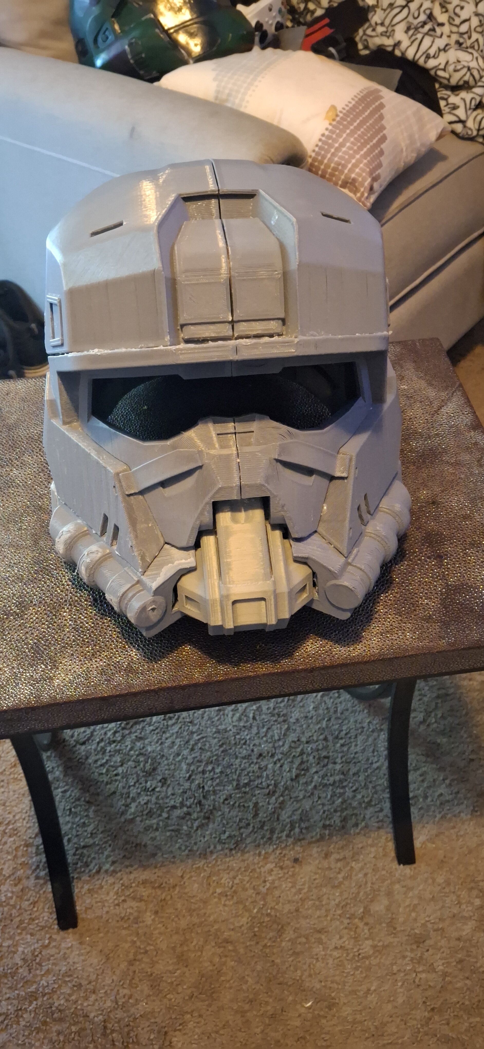 So far I have the front and back of the cod printing, boot printed, knee printed, hand plate, my helmet already. Now I have to print out the shins, thighs, forearms, chest and shoulders.