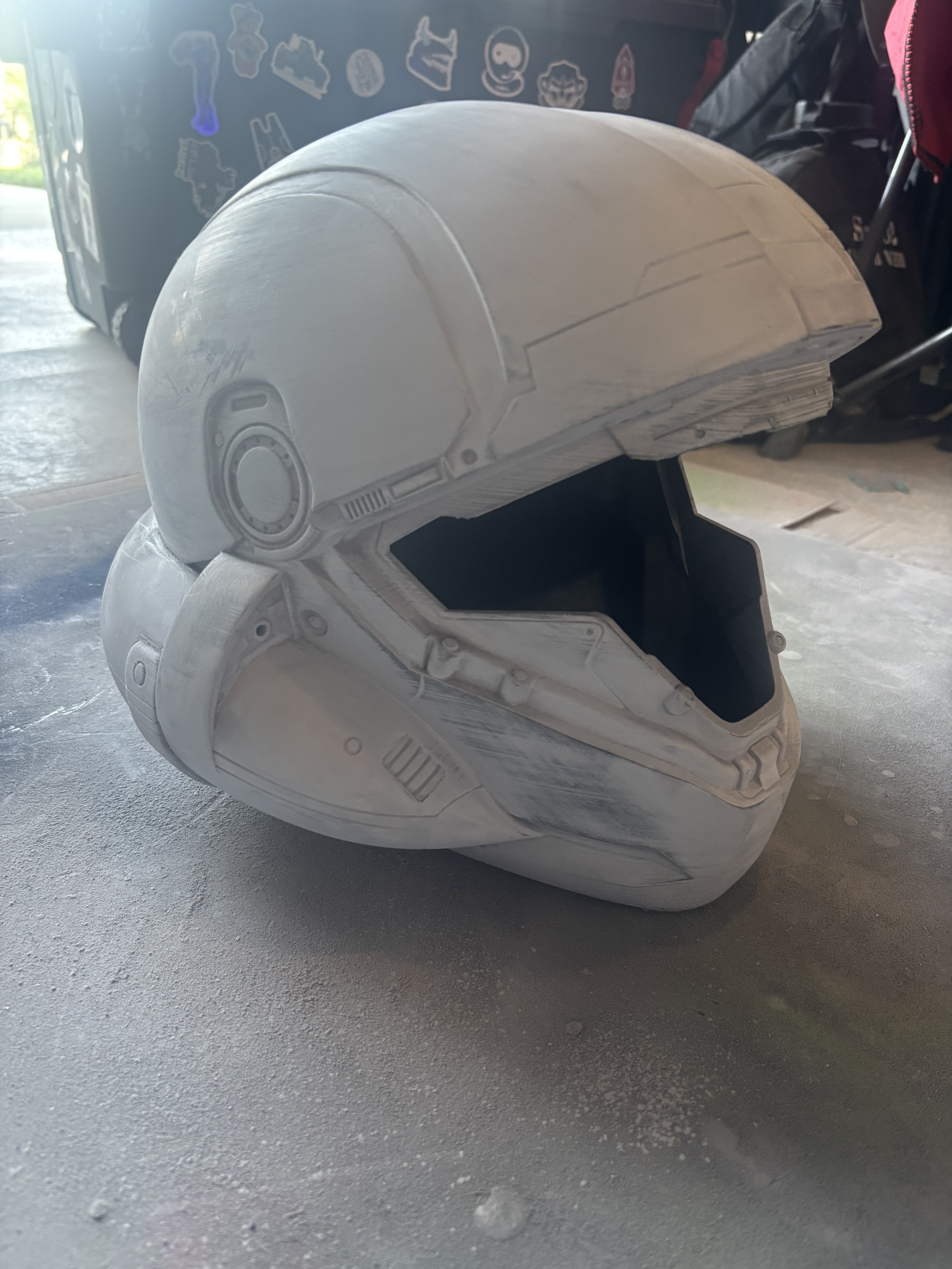 When I first saw the art for this helmet, I was kinda meh about it. I know they had to make it look different enough to stand out from the ODST helmet, but man those chipmunk cheeks on the sides just ruined it for me. But now, seeing a physical representation, I actually really like it. And you did an amazing job of making sure you didn't lose any detail in the sanding process.