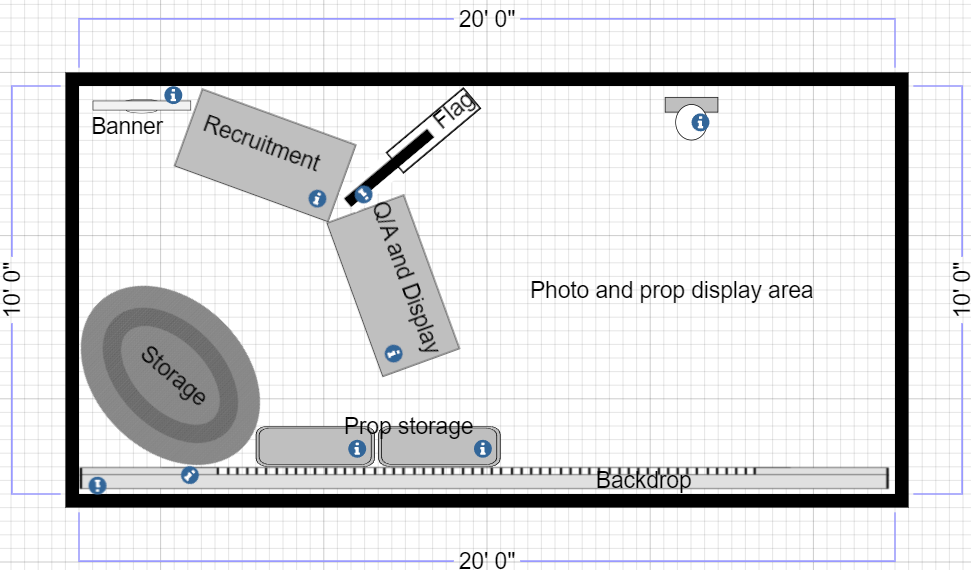 Yeah I'll make another mock up this weekend and throw in into the thread. Did you want the back drop for just the photo area or to span the whole booth? Also I dont think a second standing banner would be necessary if we hang up the 405th or Regiment flag on the opposite side.If im not mistaken Emp Frosty you did a really nice rough mock, would you wanna sketch one up again using the dimensions of that backdrop?