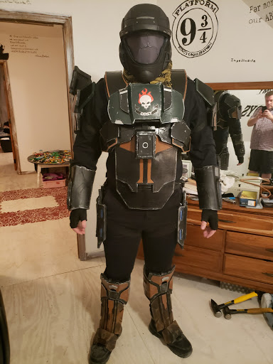 All right, I am pleased to say that I am finished. My helmet will be coming in soon, and I will have a full set! Here is an image. The armor was built by me, and painted by Artex Callahan.