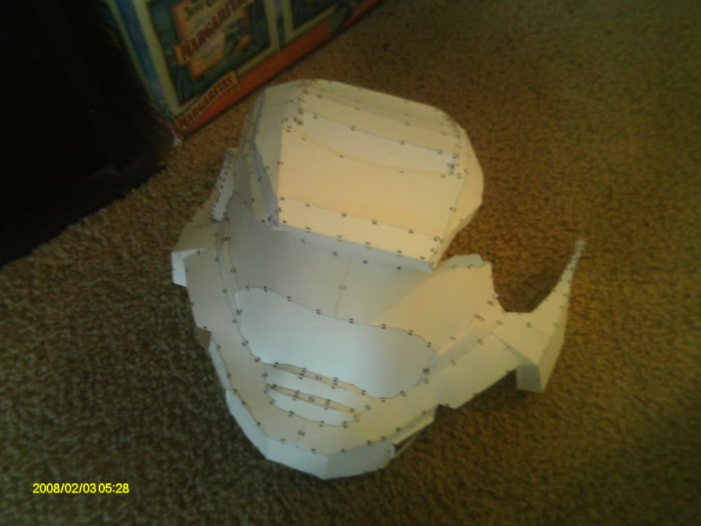 which helmet the one with the blue paper or the on that isn't finished? the blue paper on is here www.halocostuming.wikia.com and the white not finished i was just searching on google images and found a pic where it looks like it is still in pep in the pepakura program, so yah, hope that helped a little bit
