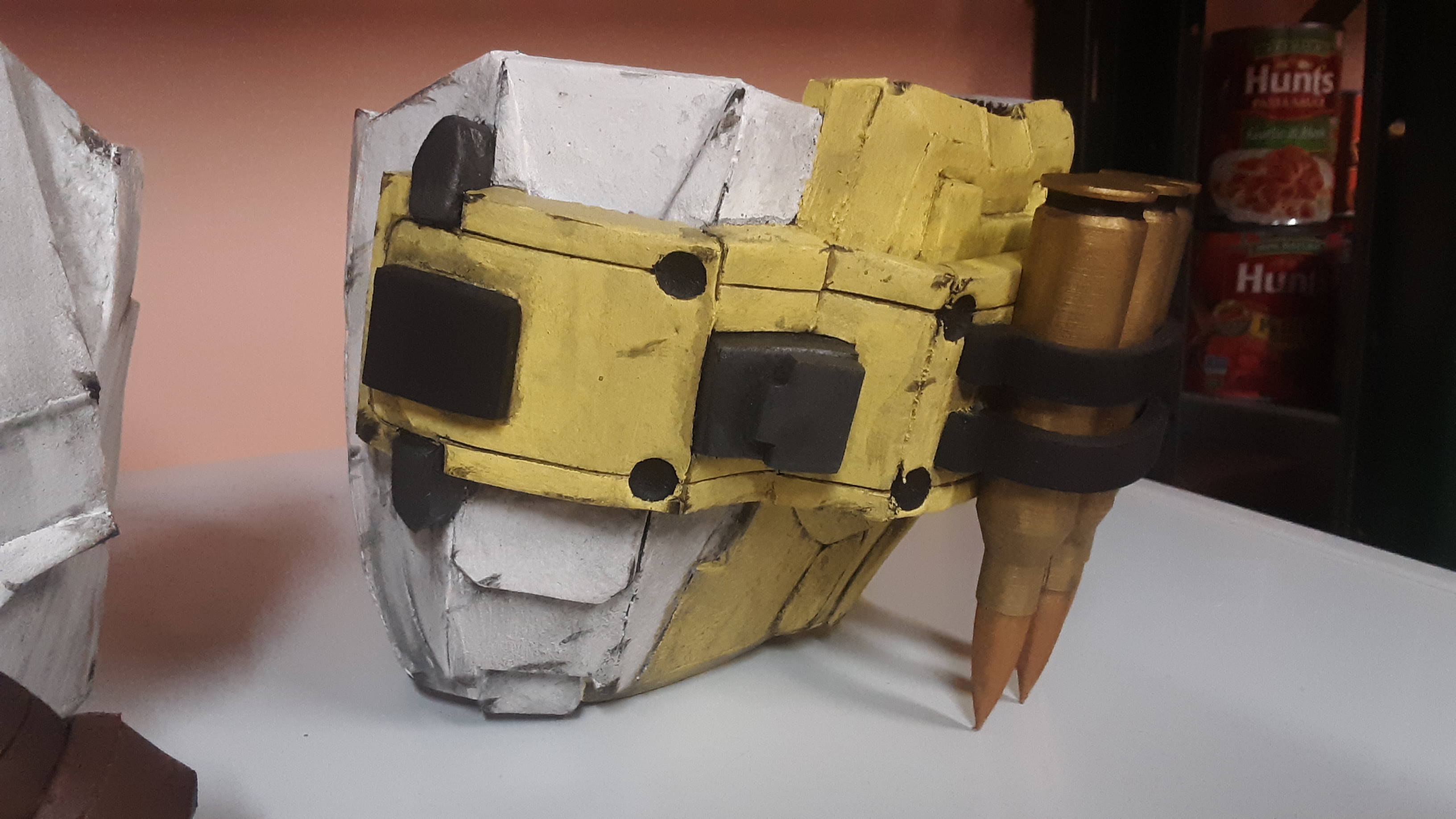 Forearms and shoulders now painted, washed, and weathered. Still need to change the color on the tops of the shotgun shells to gun metal to match the in-game color however. Moving onto the belt next so I can figure out the best way to mount the grenades to it. I'm thinking just velcro them on so I don't have to worry about them ripping paint or worse if they fall off, plus it'd give them a little "flexibility" if I decide to try something stupid in my suit.....like that would ever happen, ha!