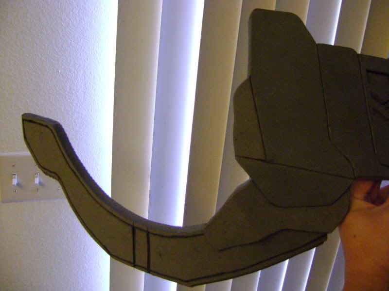 3. So, I decided to build the armor using 1/2" inch foam rubber mats. I used super glue for assembly and dremel'd the edges and sides to clean it up a bit. The first pic was shot without using the flash to show the angles.