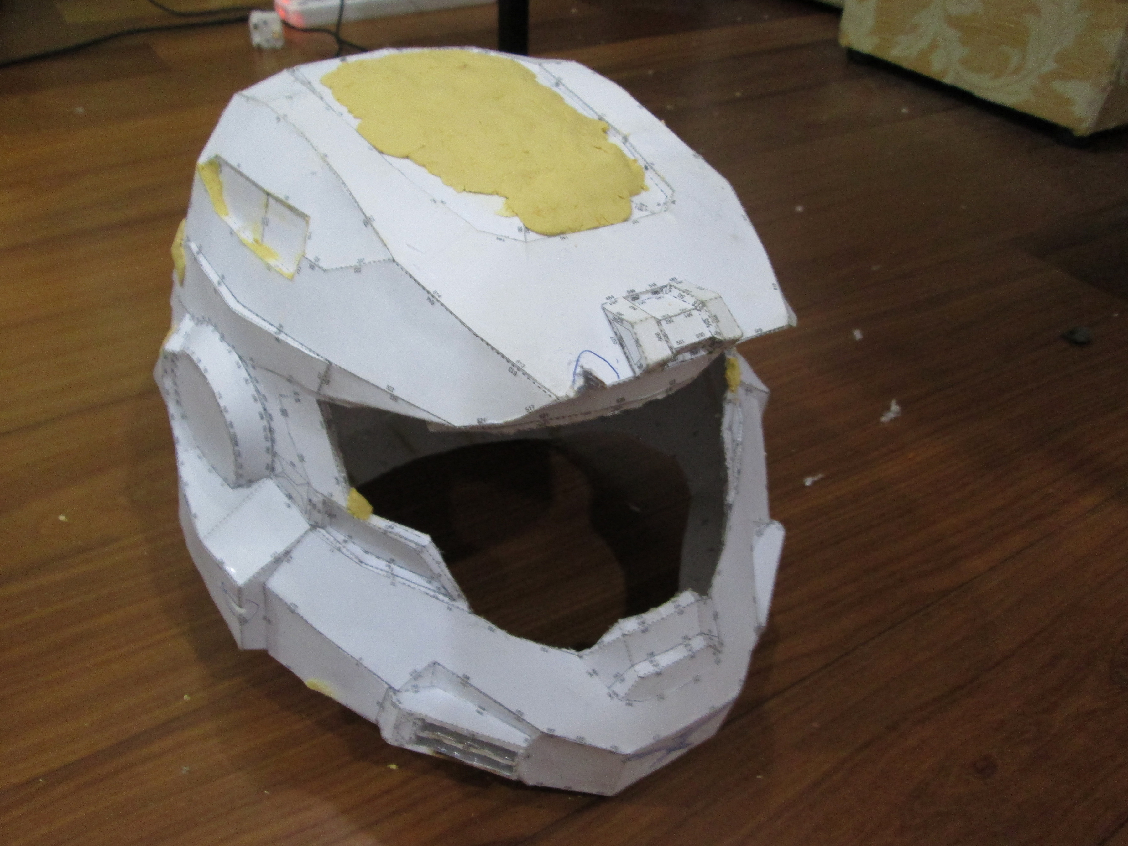 Ive found though, that hot glue seems ok for hardening (it's not stiff, but as a costume, it seems up to par for drops and falls. [the helmet as least..]), and I might try to get some Drywall mud to substitute for bondo.