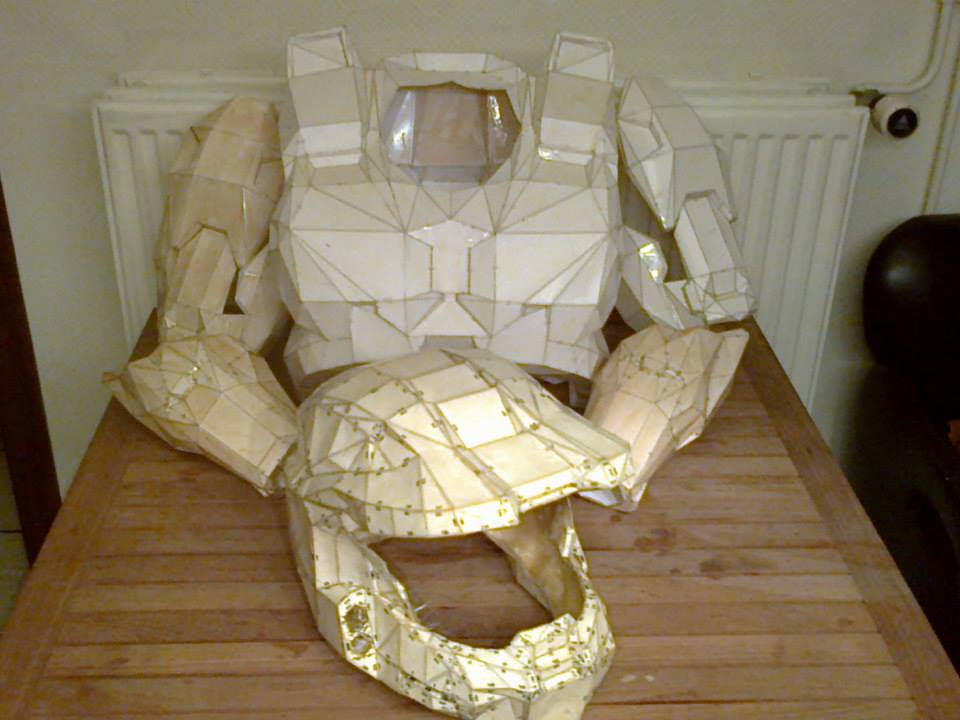 And this is it, my garbage can. Pieces lost their shape, broke down due to poor glueing and handling, CHAOS. The biggest facepalm ever was served when I realized I shouldn't have cut my chestpiece when it was not fully hardened on the inside, it did not fit anymore. I decided it was time for my to stop doing what I was doing and admit that I had to learn a lot, THEN work a lot. But anyhow, there probably couldn't have been a better lesson for me then my own project kicking me in the nuts, so that's a good thing! This joke took me about three weeks to pull off last holidays.
