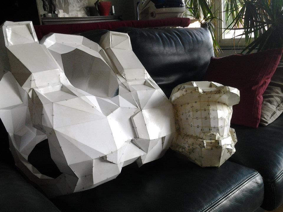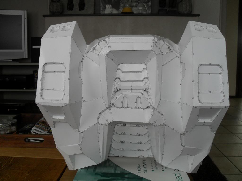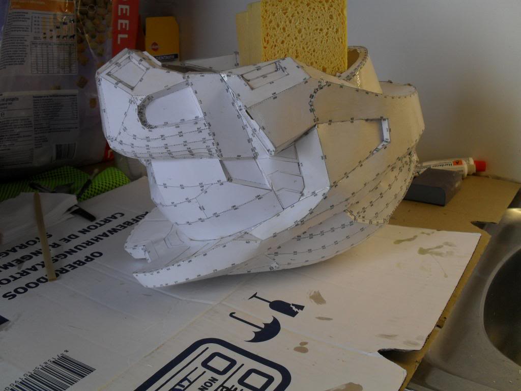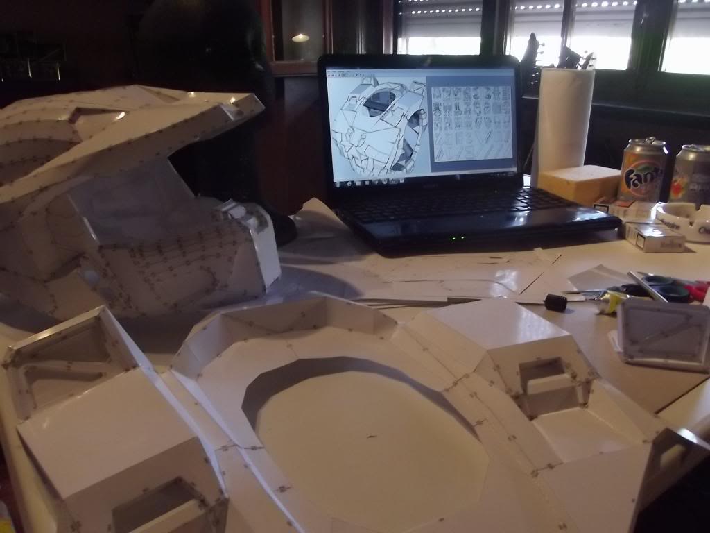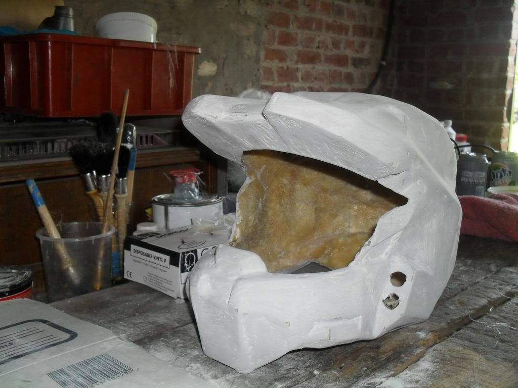 THAT CHESTPIECE, right? So busy folding and "getting it done" I didn't even think of looking for scaling tutorials. Well, this one went straight in the trash and I searched the net to finally find the Halo goddess tutorial. (HALLELUJA) This was my first contact with the forum, didn't even think of exploring it..D'oh! The Helmet had several coats of resin, I literally SOAKED it! This is SO WRONG, always take it step by step, applying small parts of the helmet at a time and letting it dry so it stays in shape.