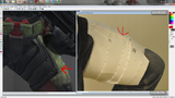 I scaled the shin at 15" measuring from my ankle(Thank you person who's name I forget) to the Knee joint/hinge. Now the thigh was a different beast, you see, it was scaled the correct height(For me) but it was too small everywhere else. the armour plating was not thick enough neither was the inner thigh. so I took it and scaled it outward and made an unfold, in the Pic his has the R on it: