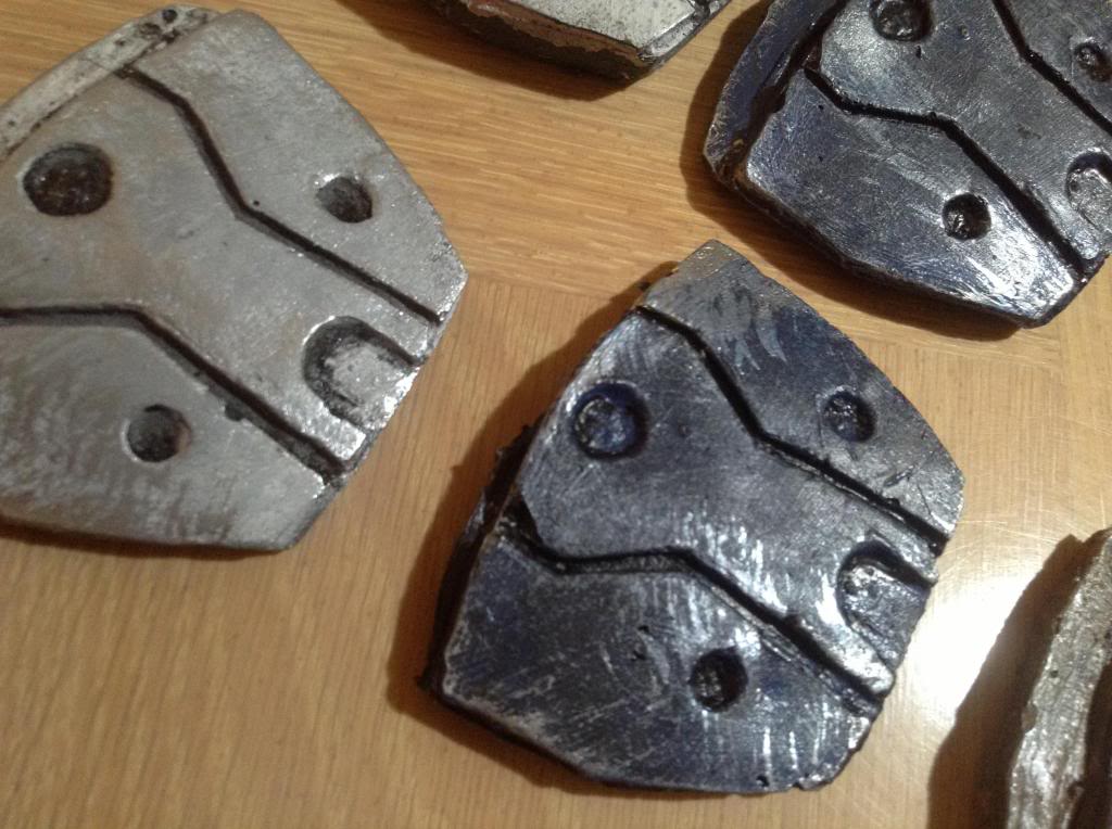 But so far, I'm happy with the results. The casts are not very strong, so when I'm casting the biceps and bigger pieces, im going to use pieces of fiberglass mat in the mold with the rondo to help add strength, because these hand plates are just cast in rondo and they aren't very strong.