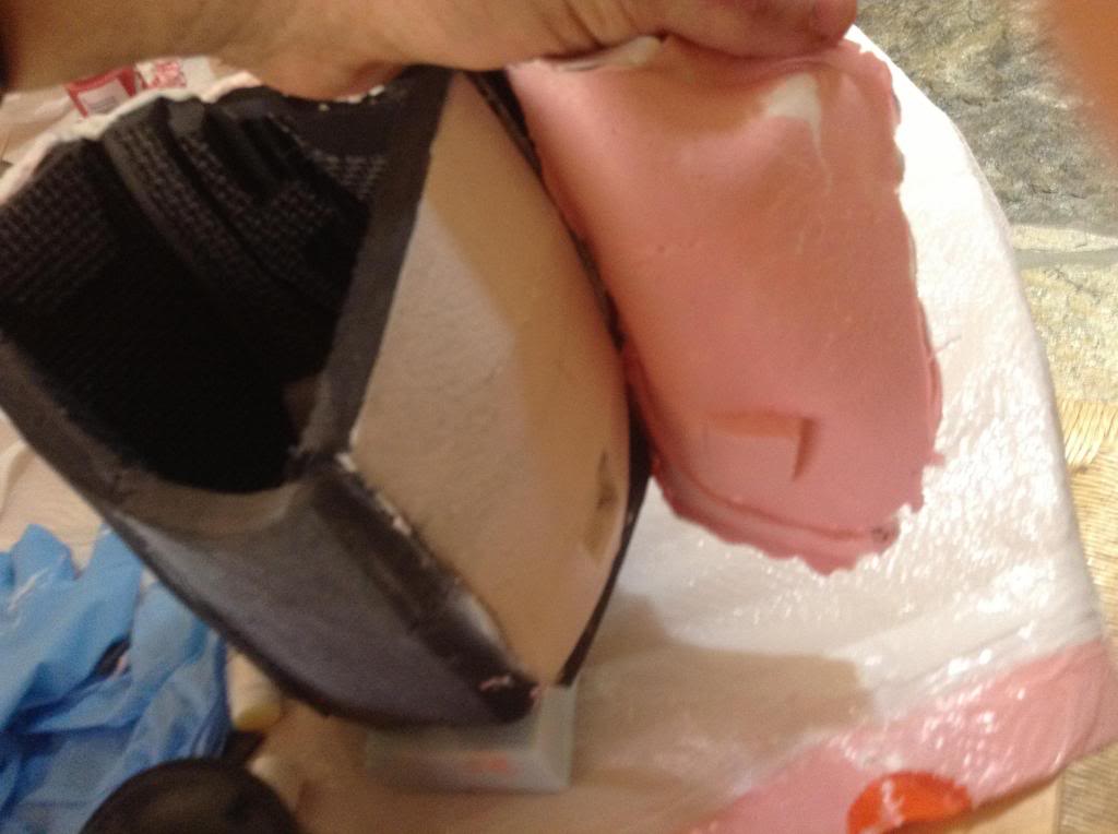 Edit: since I know someone will ask, this is NOT rebound 25. It is regular window and door silicon from Walmart (make sure it's 100% if you want to try this yourself, btw). It's pink on the first layer because I add a drop of red acrylic paint on top of some liquid glycerine to help it have even more non-stick. The glycerine is clear, so I add the red to help tell when I have it evenly mixed in. And because I like the color. Maybe I'll experiment with more paint in my silicon to make different color molds!