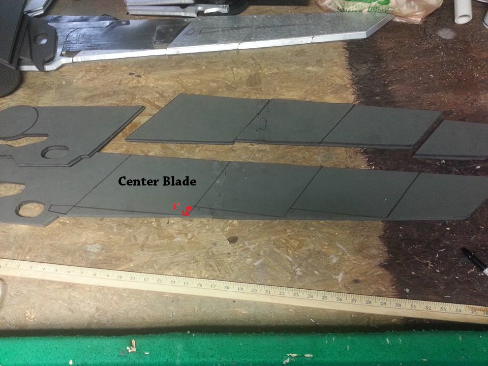 I know this thread hasn’t been used in like a year but I’m new here,I found this and had a few questions so I made an account. I want to build this for an upcoming cosplay I’m going to with some friends, but I’m quite confused about the folding mechanism, pictured in the post I’m replying to. Also, I would prefer to use some kind of wood rather than foam, to make it as sturdy as possible, how might I be able to subsistute this? And one question about the hilt; how long are each of the pipe segments? Thanks in advance, if this even gets seen, haha.I used 1/2" EVA foam from Harbor Freight. The pieces are held together by not cutting the center section all the way to the back of the blade. Here's a picture to help better demonstrate what I mean: