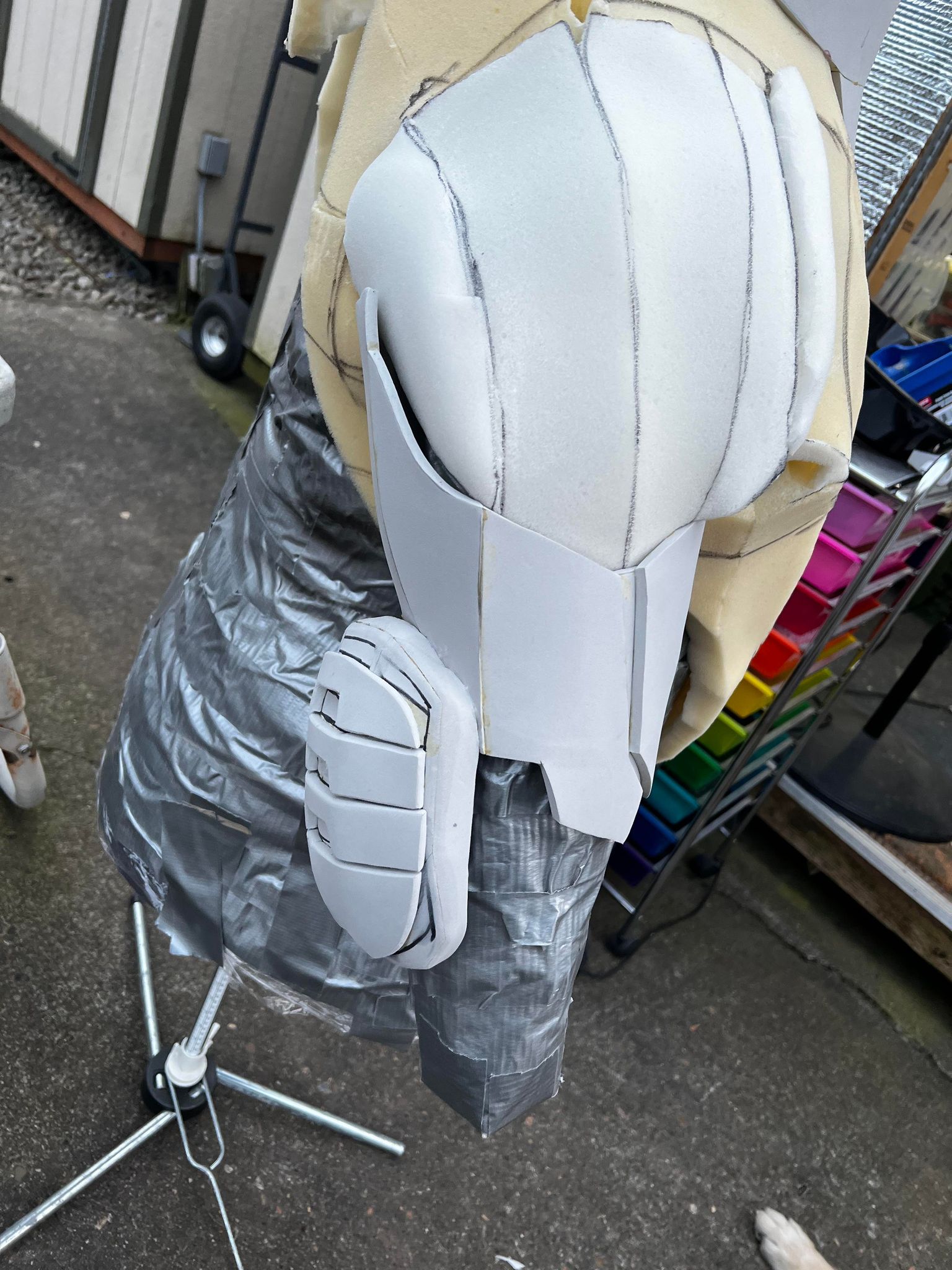 I wanted to get the base forms made so I can make size and shape adjustments to my shape. Even at to-scale, Skirmishers are wonky and unbelievably skinny, so this costume will have some added thiccness to it.