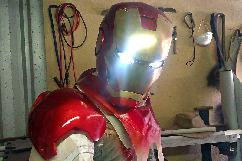 The lights have kill switches inside the helmet, as well as contacts on the faceplate to cheek that activate the eyes once the faceplate is down.