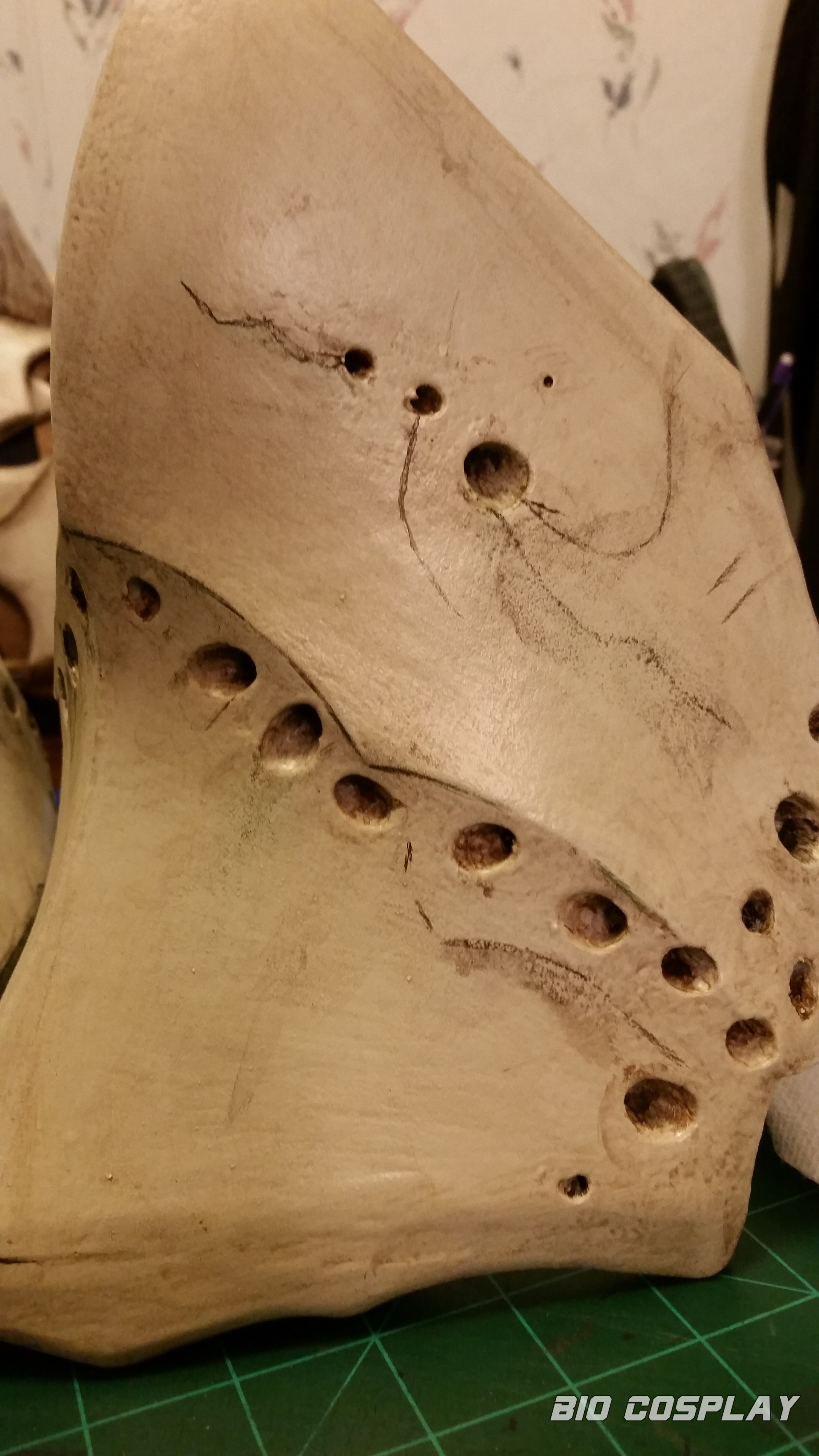 The gap between the top of the legs and the bottom of the codpiece is much less now which just looks great! The arms now just clip on instead of having to screw together both at the elbows and at the shoulder bells. The trimmed-down neck allows for head movement now bus still needs a little more off it. The cuff on the right arm needs reshaping slightly to get my thumb joint out. Took a little skin off tonight, forgetting that when you heat up, you expand.