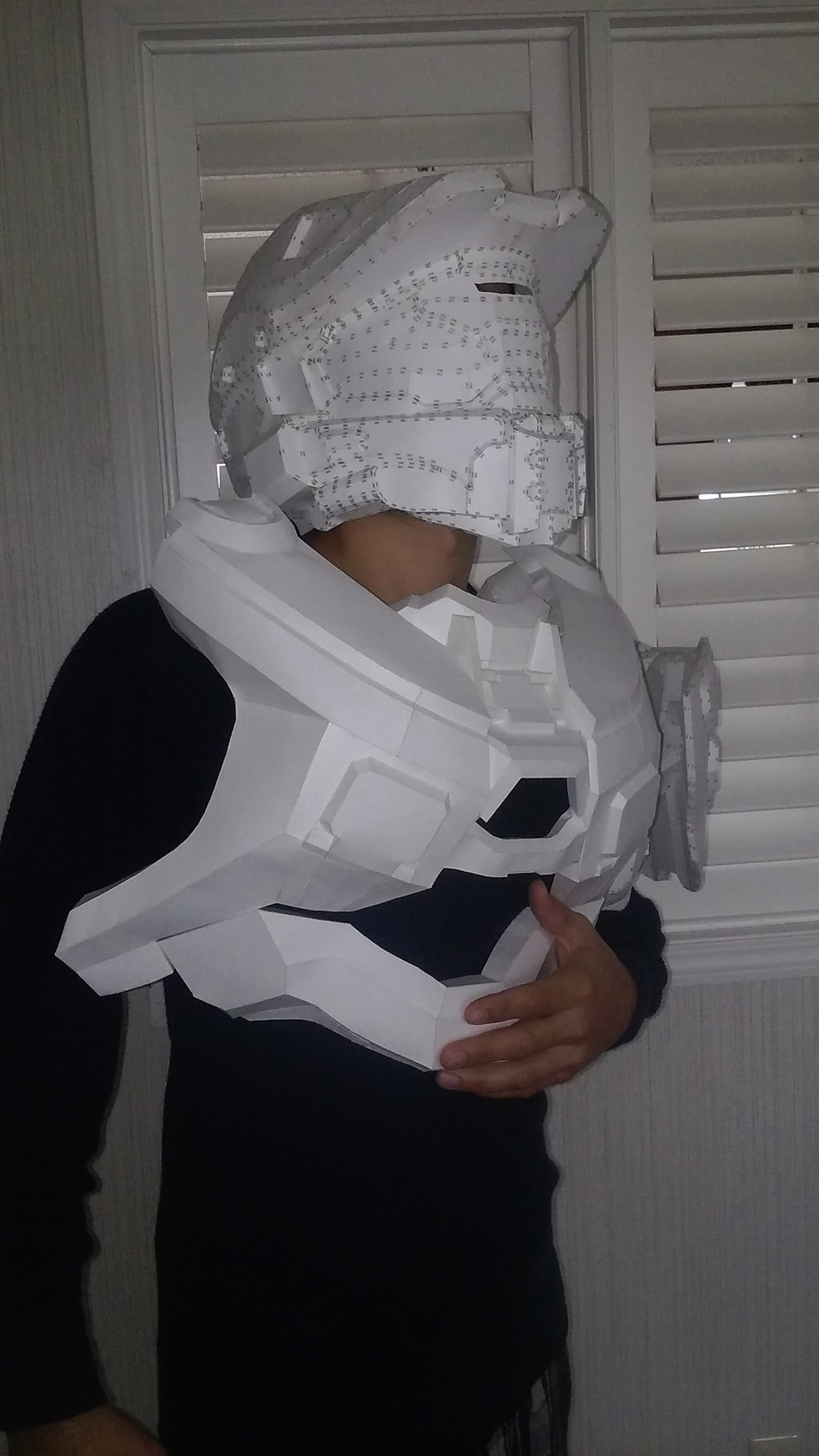 Thanks man, appreciate the comment. Gonna post some more pics tonight. Gonna screen shot the to points that I used with the measering distance between two points in pepakura for scaling. Might also look small because of the area around the neck, might of sucked in a bit from glueing the pieces together. Over all I did add 3 more inches to the scaling to the original scale of the model for the torso.