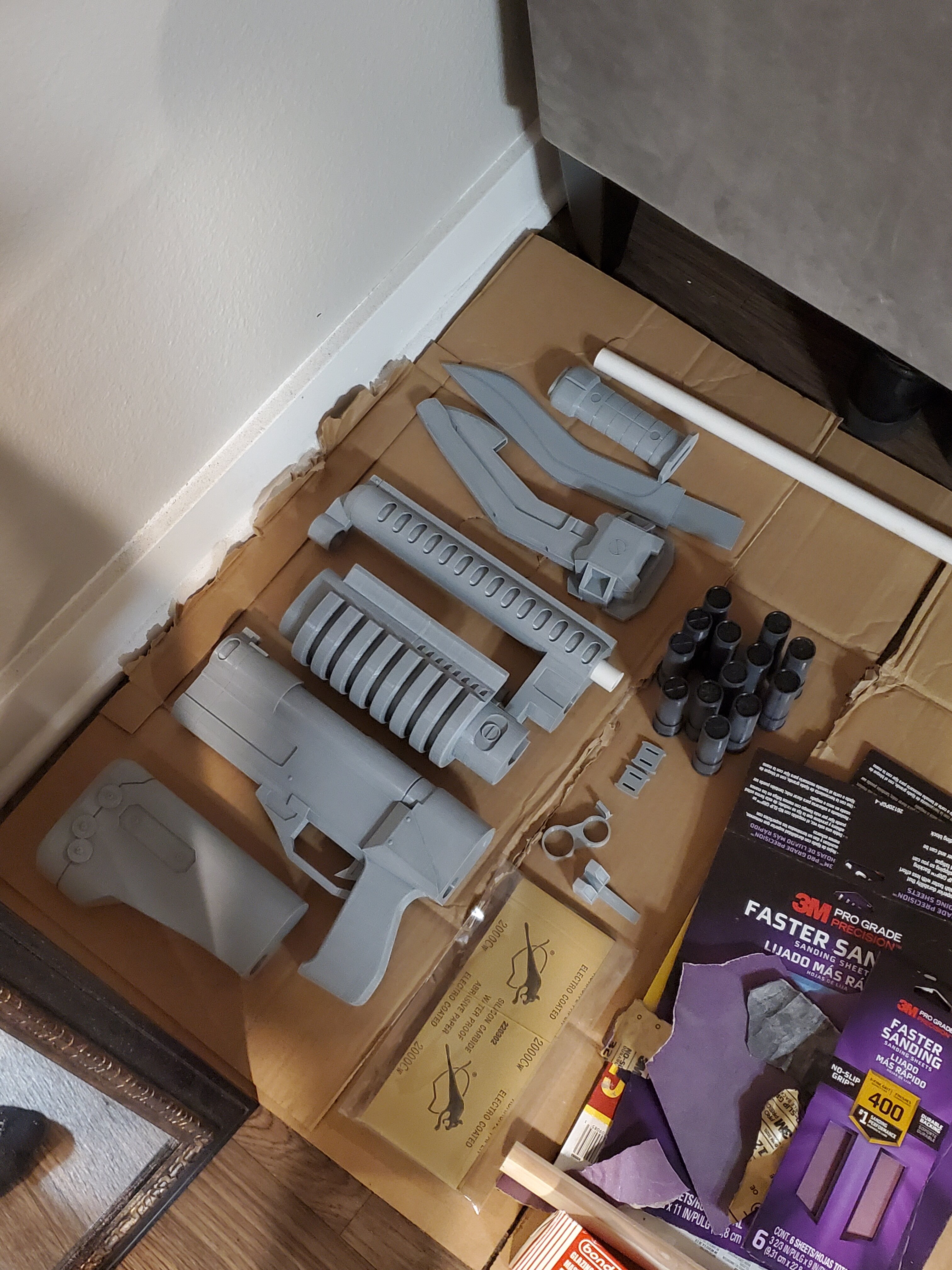 Speaking of, here is a sanded shotgun and kukri. Will use sprayable filler/primer and wet sand these, to get that super smooth look